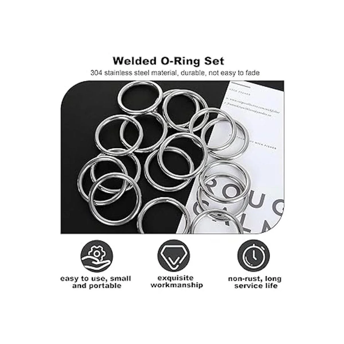 Calidad prémium: nuestra fuerte junta tórica para manualidades está hecha de acero inoxidable 304 de calidad, que es pulido brillante, resistente a la corrosión y el óxido; la junta tórica sólida se puede utilizar tanto en interiores como exteriores