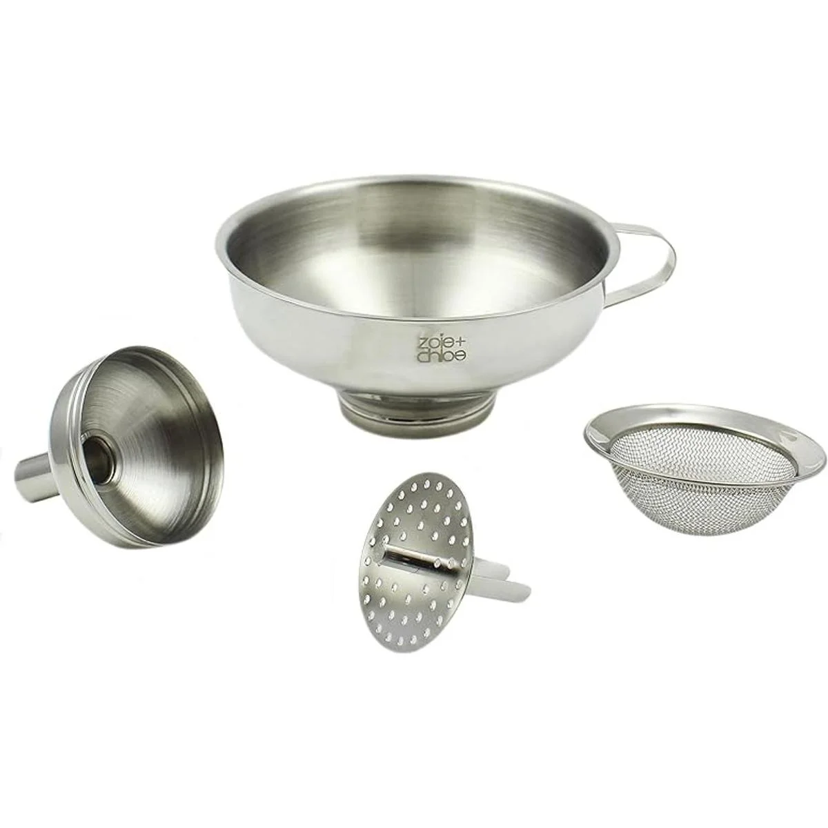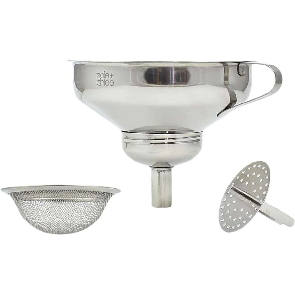 Zoie Chloe Juego de embudos de acero inoxidable 3 en 1, boca ancha con cesta de malla, boca estrecha con colador
