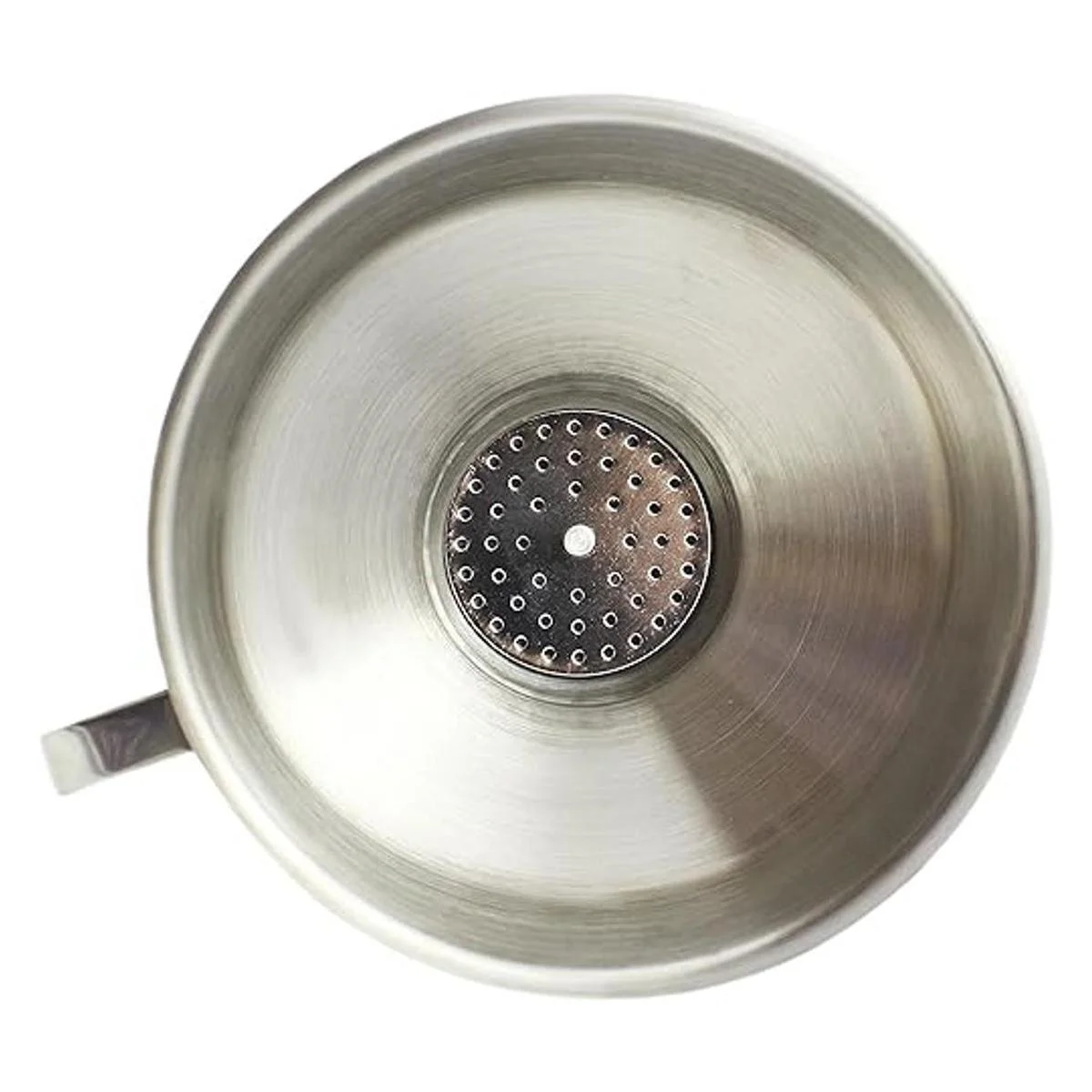 Boca ancha con filtro de malla fina desmontable. Fácil de escurrir grandes lotes de caldo o salsa, o aceite de filtro.