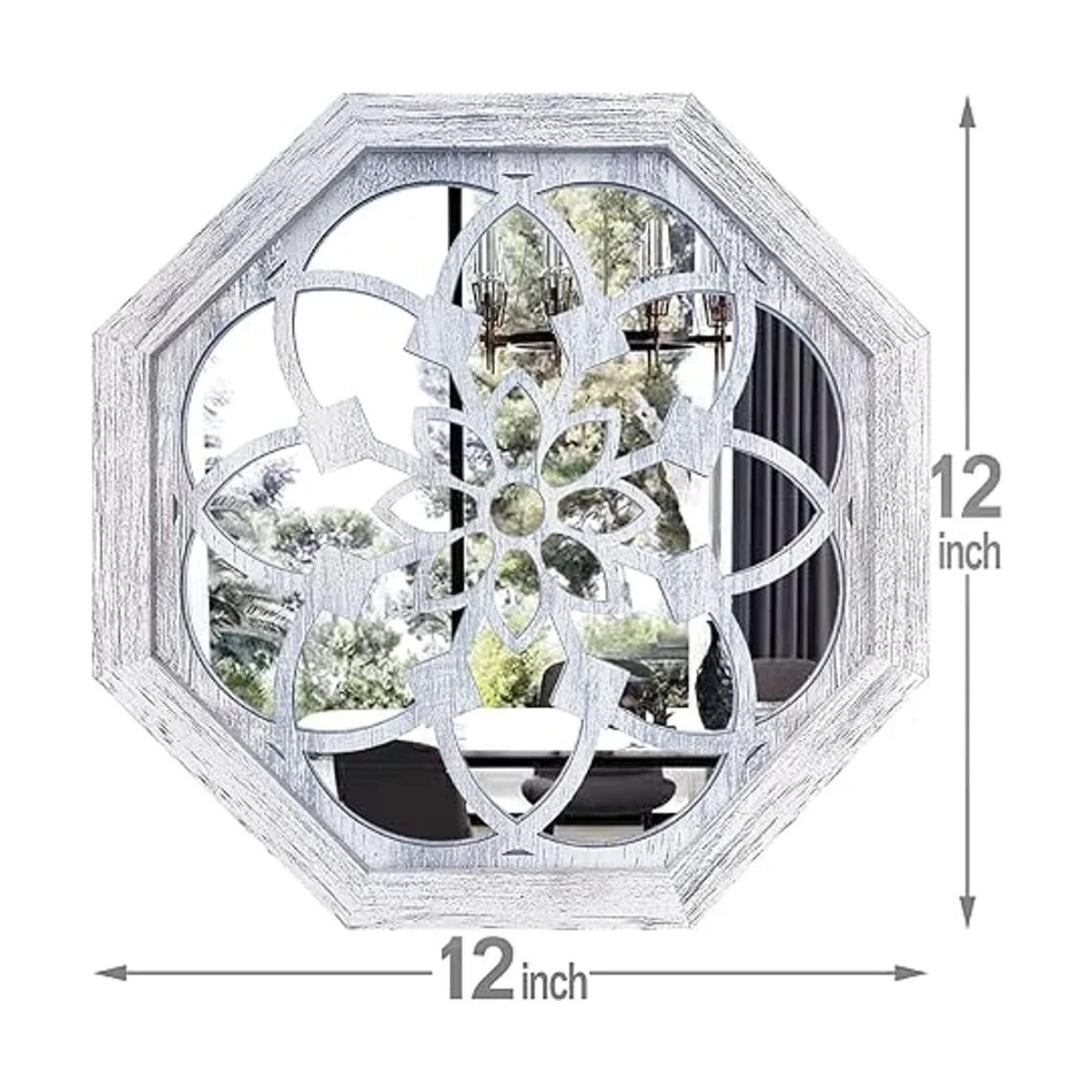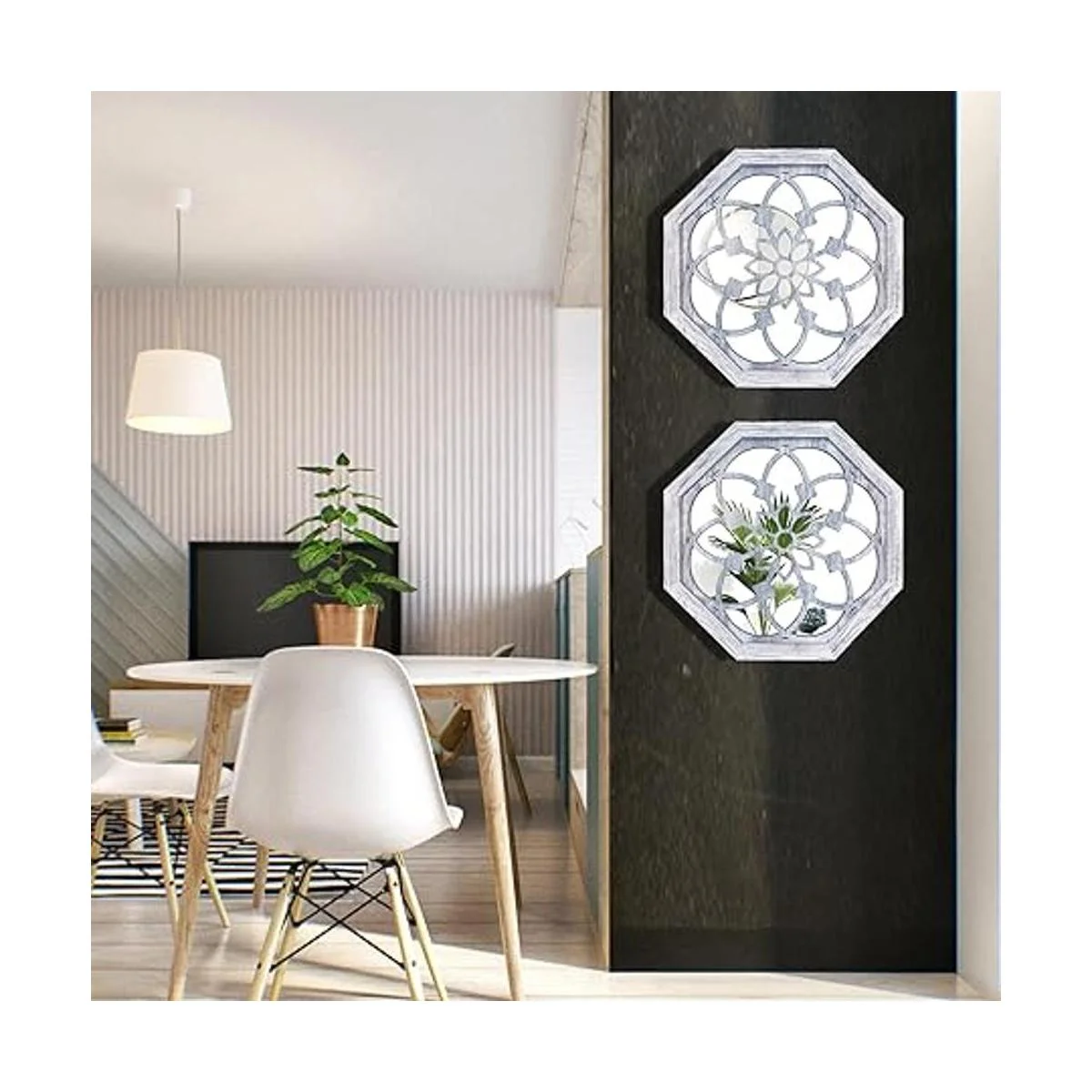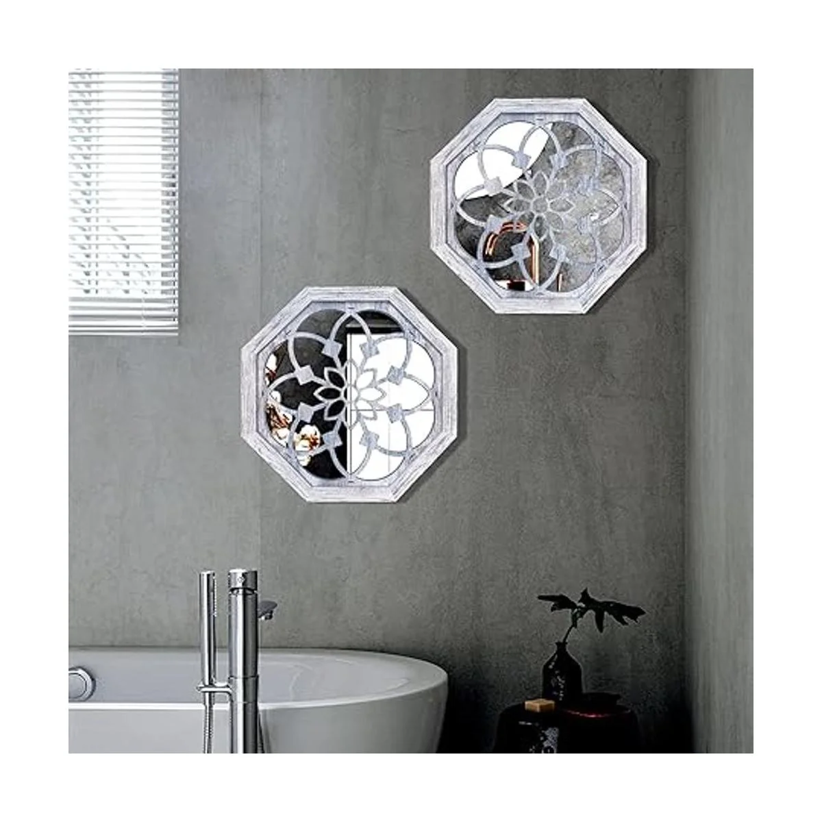 ZOLAPI 2 espejos octágonos montados en la pared, espejo vintage de granja para decoración de pared, espejo decorativo de color blanco rústico para vestíbulo, baño, dormitorio 12 x 12 pulgadas