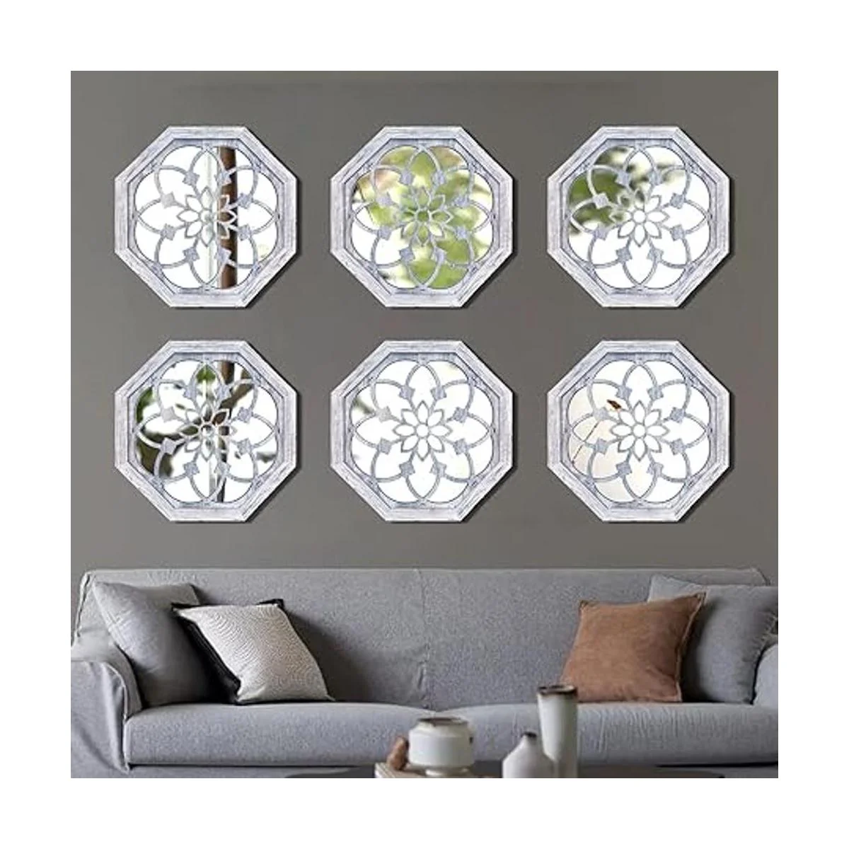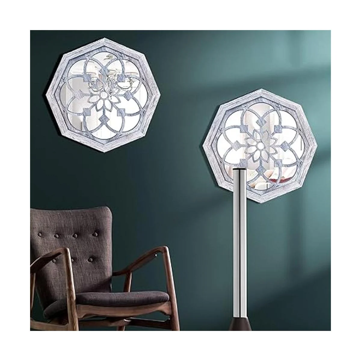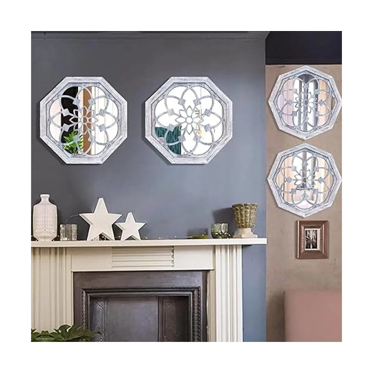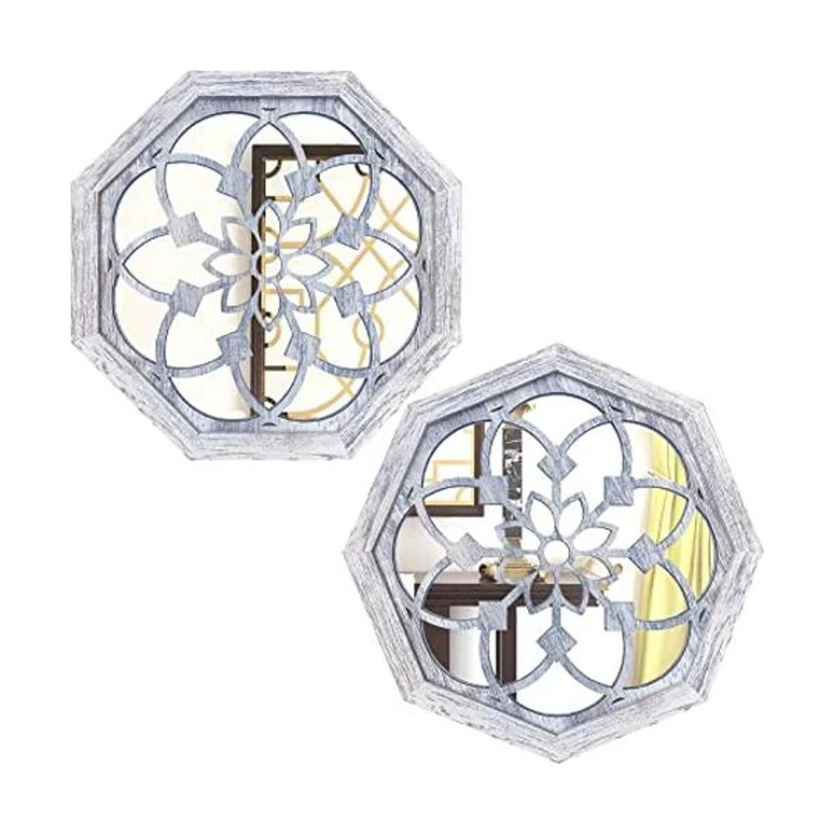 ZOLAPI 2 espejos octágonos montados en la pared, espejo vintage de granja para decoración de pared, espejo decorativo de color blanco rústico para vestíbulo, baño, dormitorio 12 x 12 pulgadas