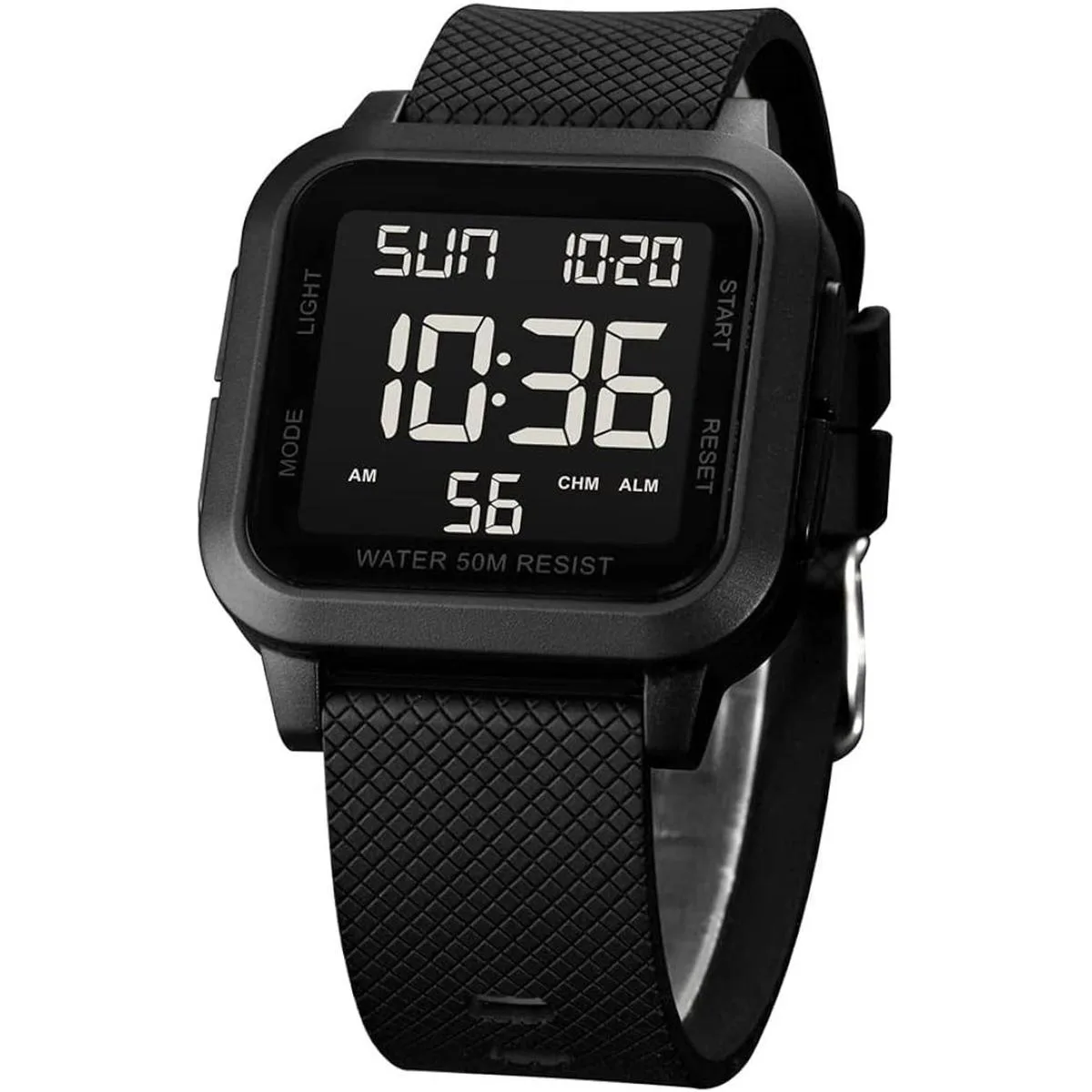 ZOLOHONI Reloj digital cuadrado para hombre, esfera de números grandes, impermeable, con función de alarma y cronómetro