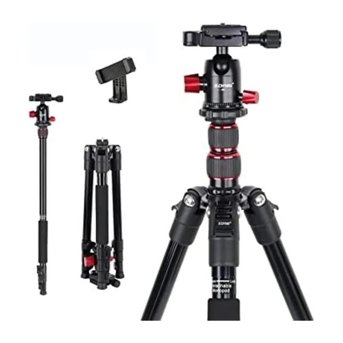 Zomei Trípode de cámara M5, trípode ligero de aluminio de viaje, trípode compacto portátil para fotografía con cabezal de bola de 360 grados y clip para teléfono para cámaras DSLR, smartphone