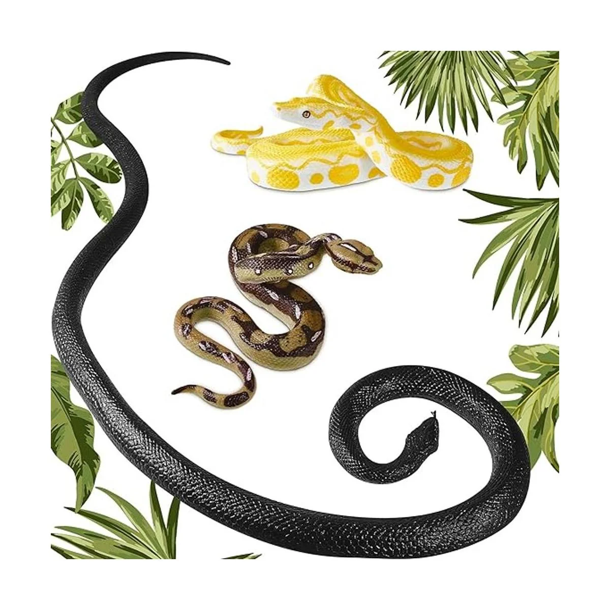 Material seguro: el juguete de serpiente negra está hecho de goma, los juguetes de pitón están hechos de PVC, todos ellos son seguros, sin olor, no es fácil de romper o decolorar, puedes jugar durante mucho tiempo si se almacenan bien