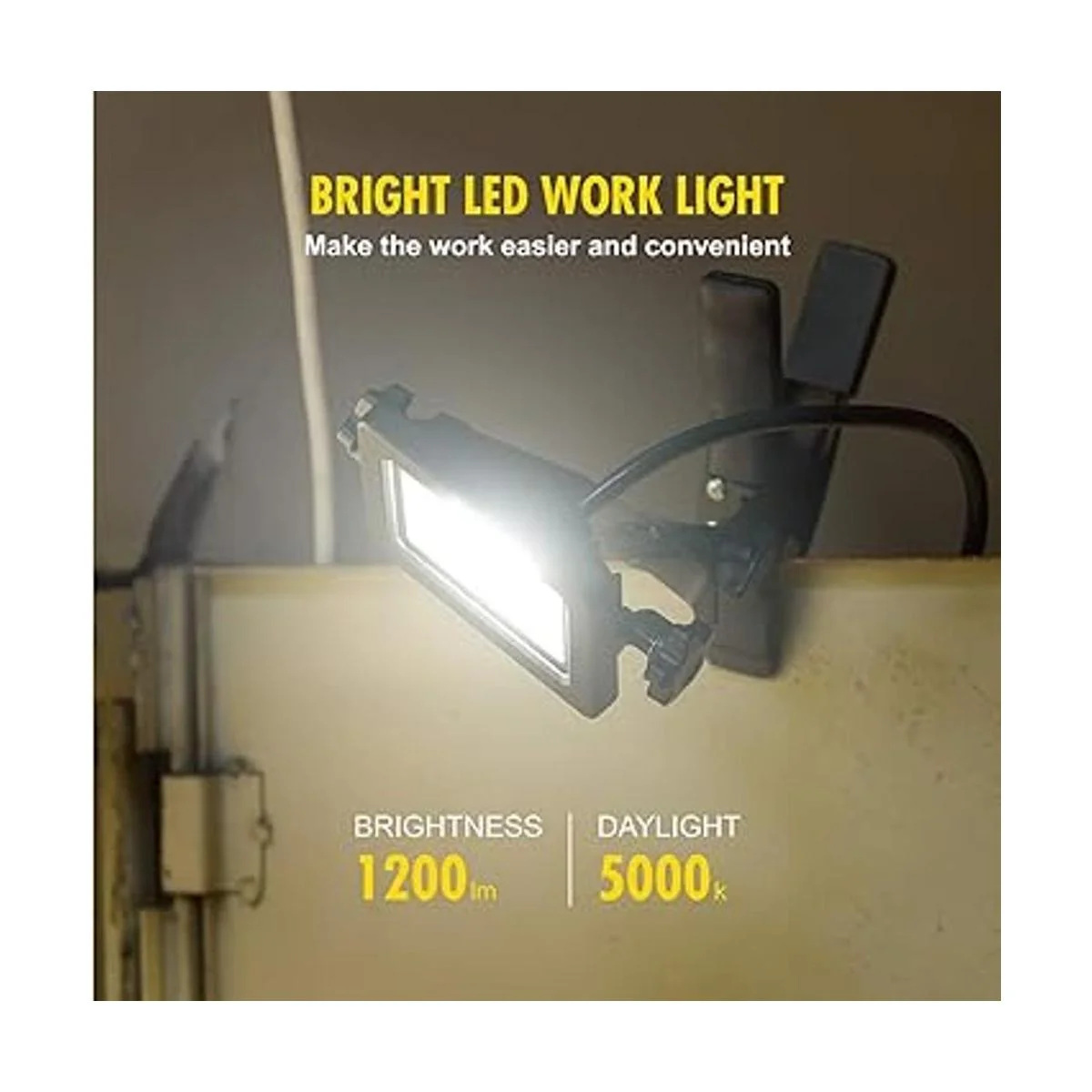 ZONE INDUSTRY CORP. Luz de trabajo portátil con abrazadera LED de 1200 lúmenes con enchufe de 120 V AC60 Hz, diseño ligero, apto para lugares húmedos, 10 vatios, luz diurna de 5000 K, certificación ETL
