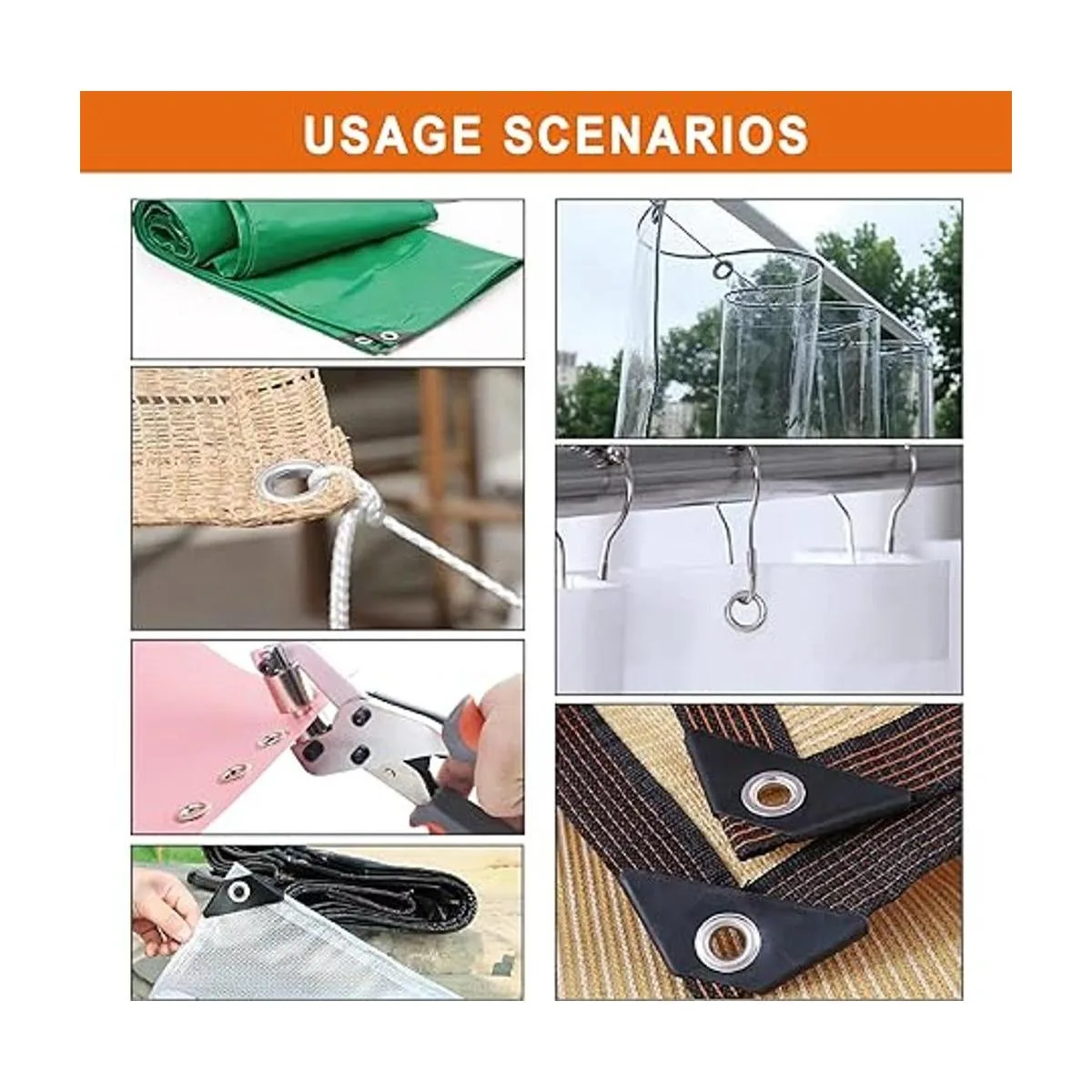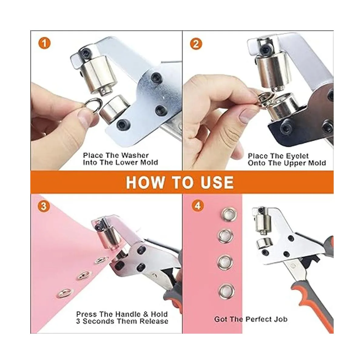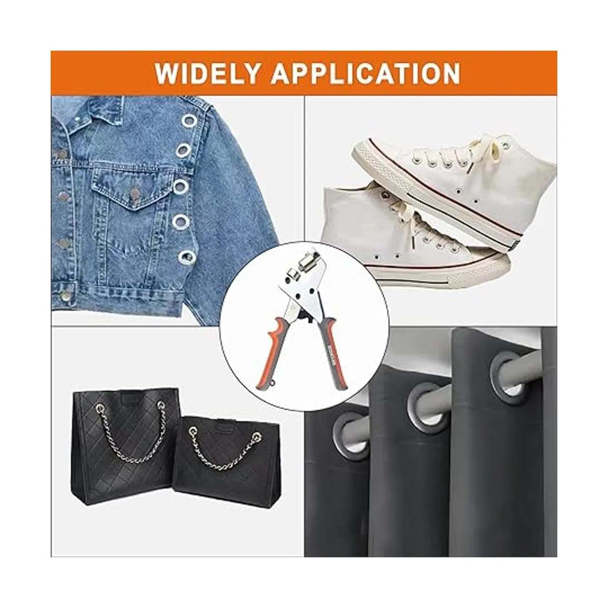 Ampliamente utilizado: este kit de alicates de mano con ojales se puede utilizar para pancartas de PVC, lona, prendas, bolsos, fundas, etc.