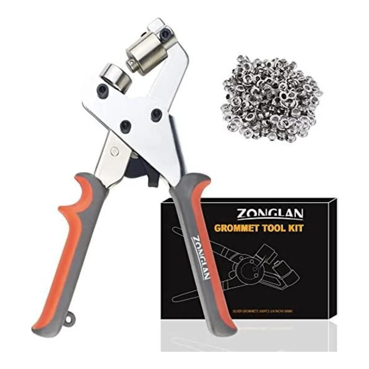 Accesorios completos: el juego de herramientas portátil Zonglan incluye un alicate de ojales y 500 ojales de 3/8 pulgadas que incluyen ojales y arandela.
