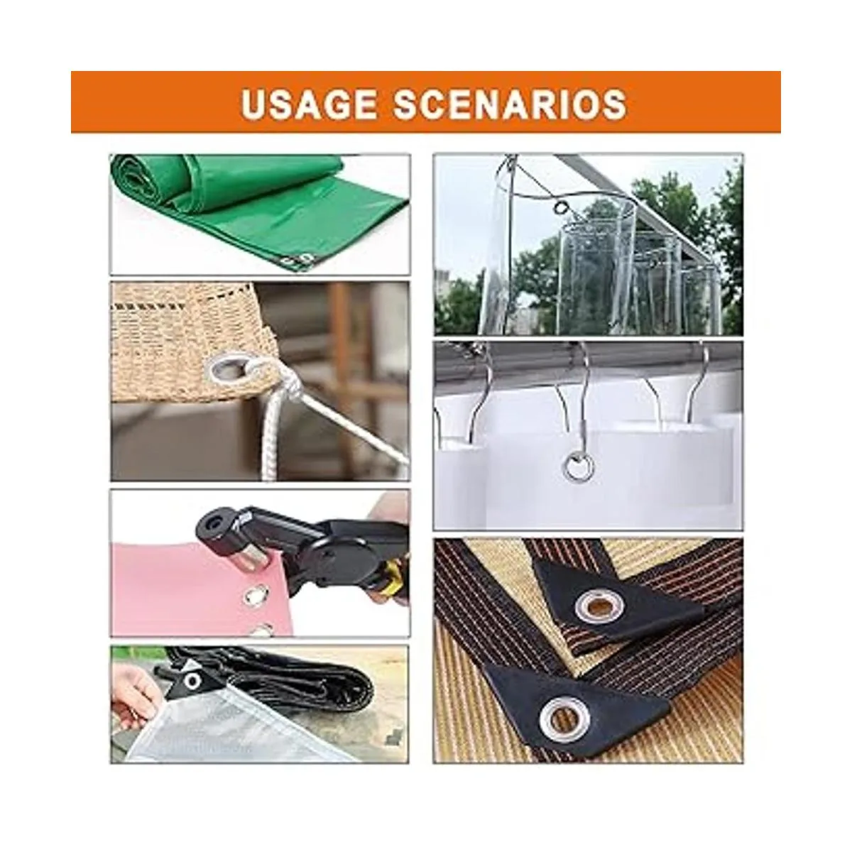 Ampliamente utilizado: este kit de alicates de mano con ojales se puede utilizar para pancartas de PVC, lona, lona de cochera, prendas, bolsos, carteles, banderas decorativas y fundas, etc.