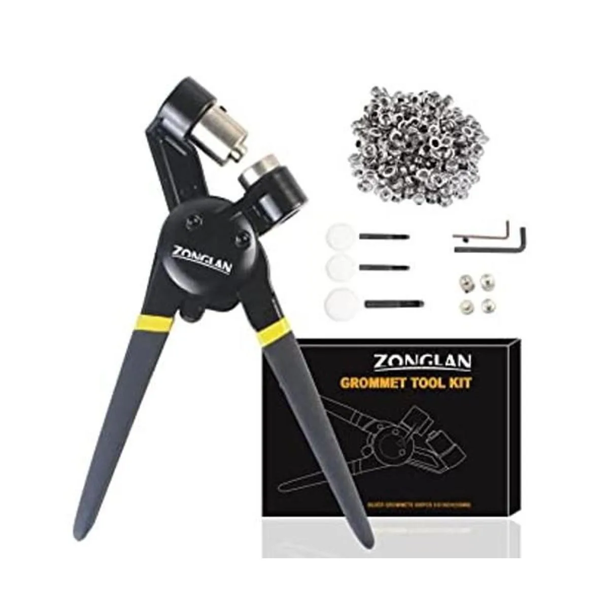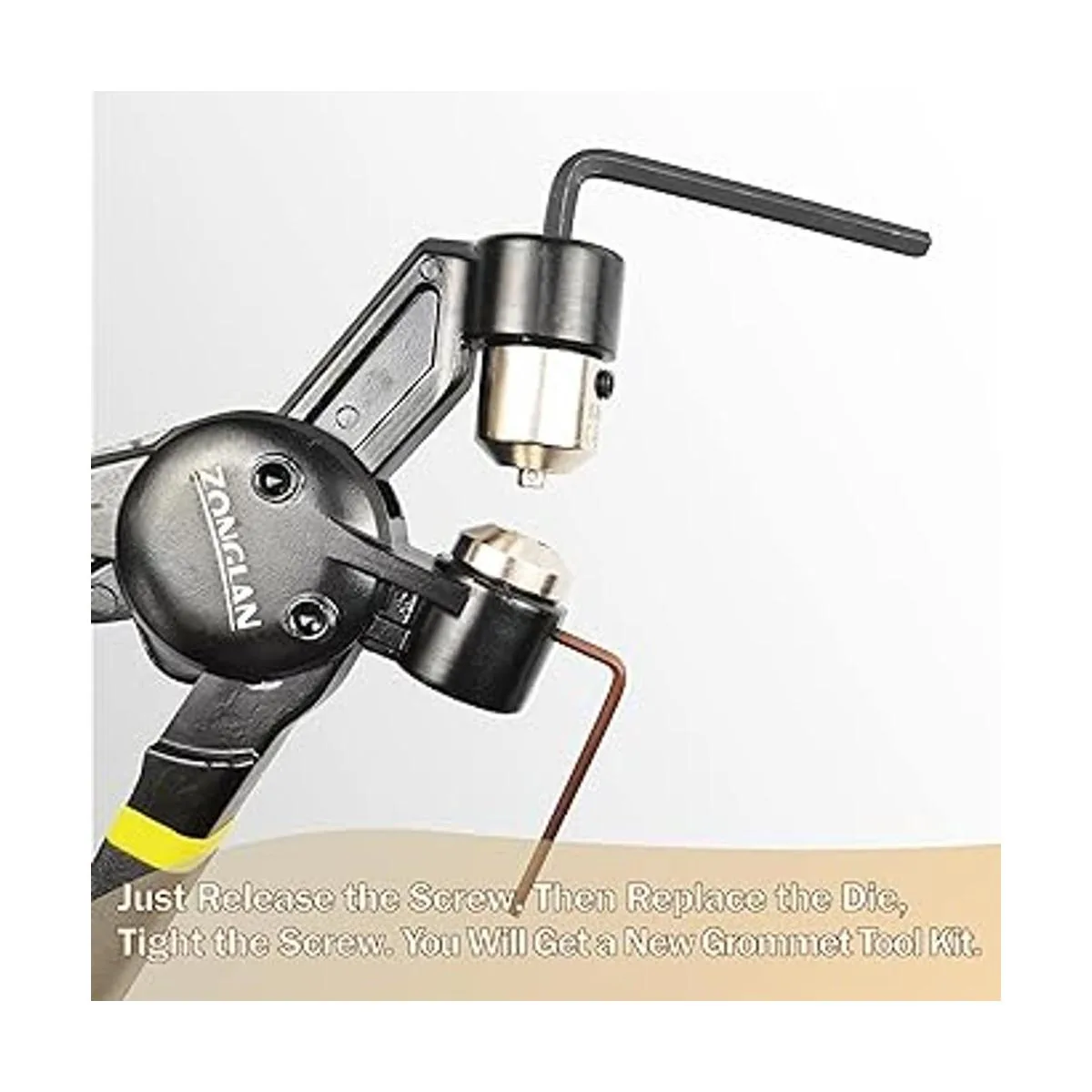 Accesorios completos: el juego de herramientas de máquina de ojales portátiles Zonglan suministra un alicate de ojales y un cortador de agujeros preperforados y un PVC