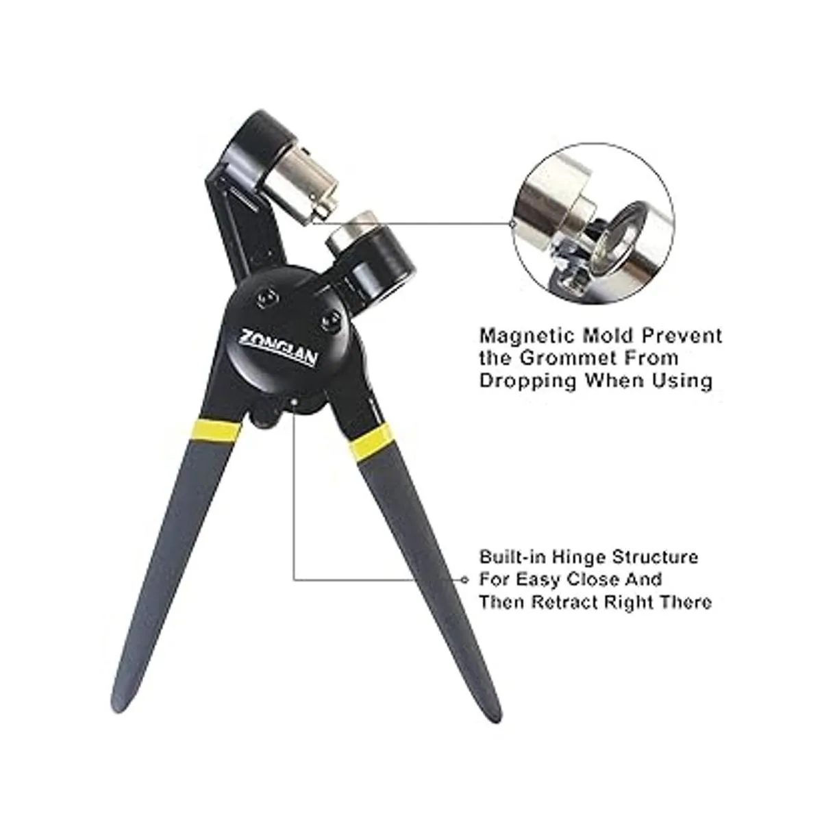 Fácil de usar: juego de alicates con ojales Zonglan con troquel superior magnético y el ojal de ranura de soplado para que no tengas que alinear los ojales por ti mismo, simplemente aprieta.
