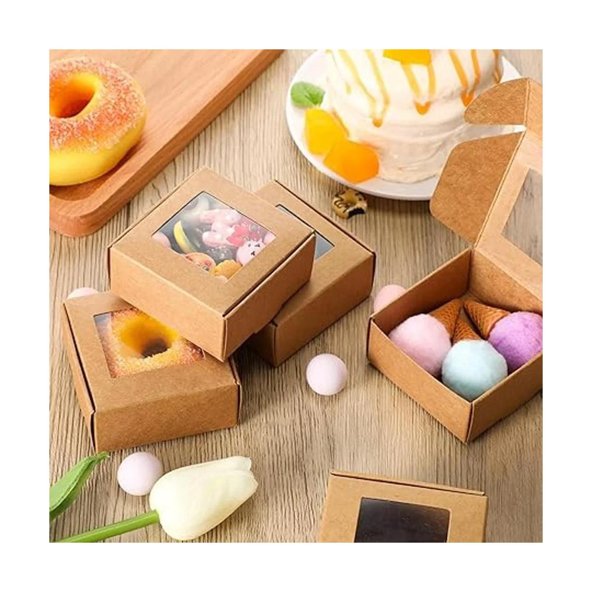 Lo que obtienes: el paquete viene con 30 juegos de cajas de papel kraft con ventana transparente, práctico y cómodo de usar, la cantidad adecuada es suficiente para organizar tu pequeña empresa o dar regalos a tus amigos, compañeros de clase, profesores, vecinos y niños durante las vacaciones