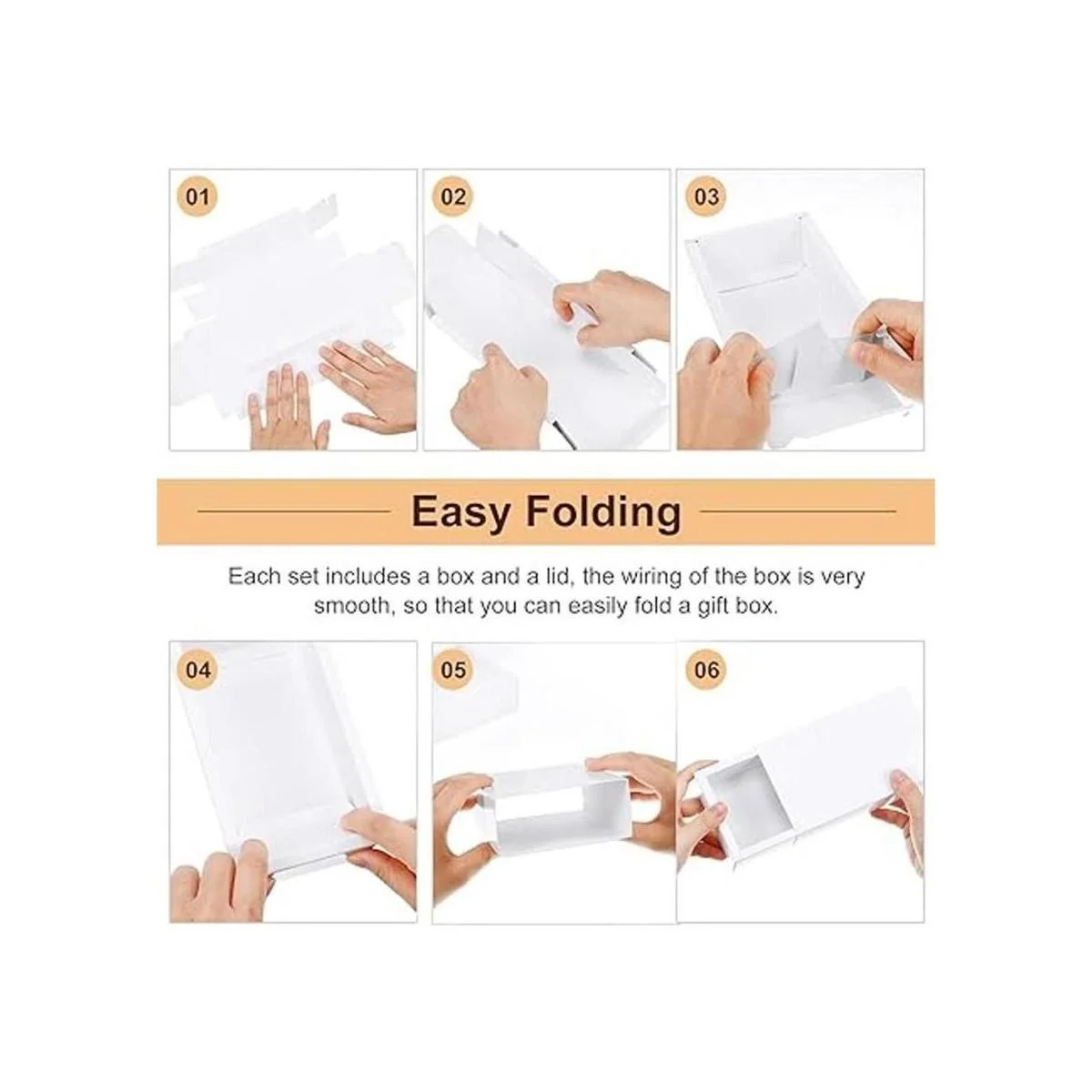 Calidad fiable: las cajas de cajones están hechas de papel kraft de calidad, lo que hace que tu regalo se vea más delicado; las líneas de cuchillos son suaves, las arrugas son transparentes, fáciles de plegar, no se necesita pegamento ni tijeras