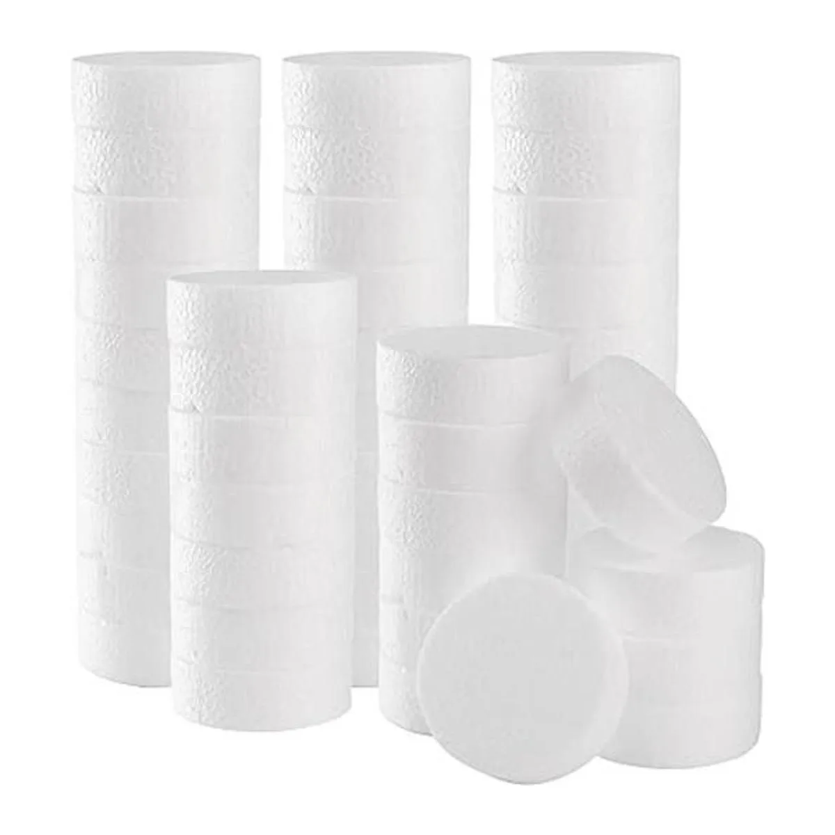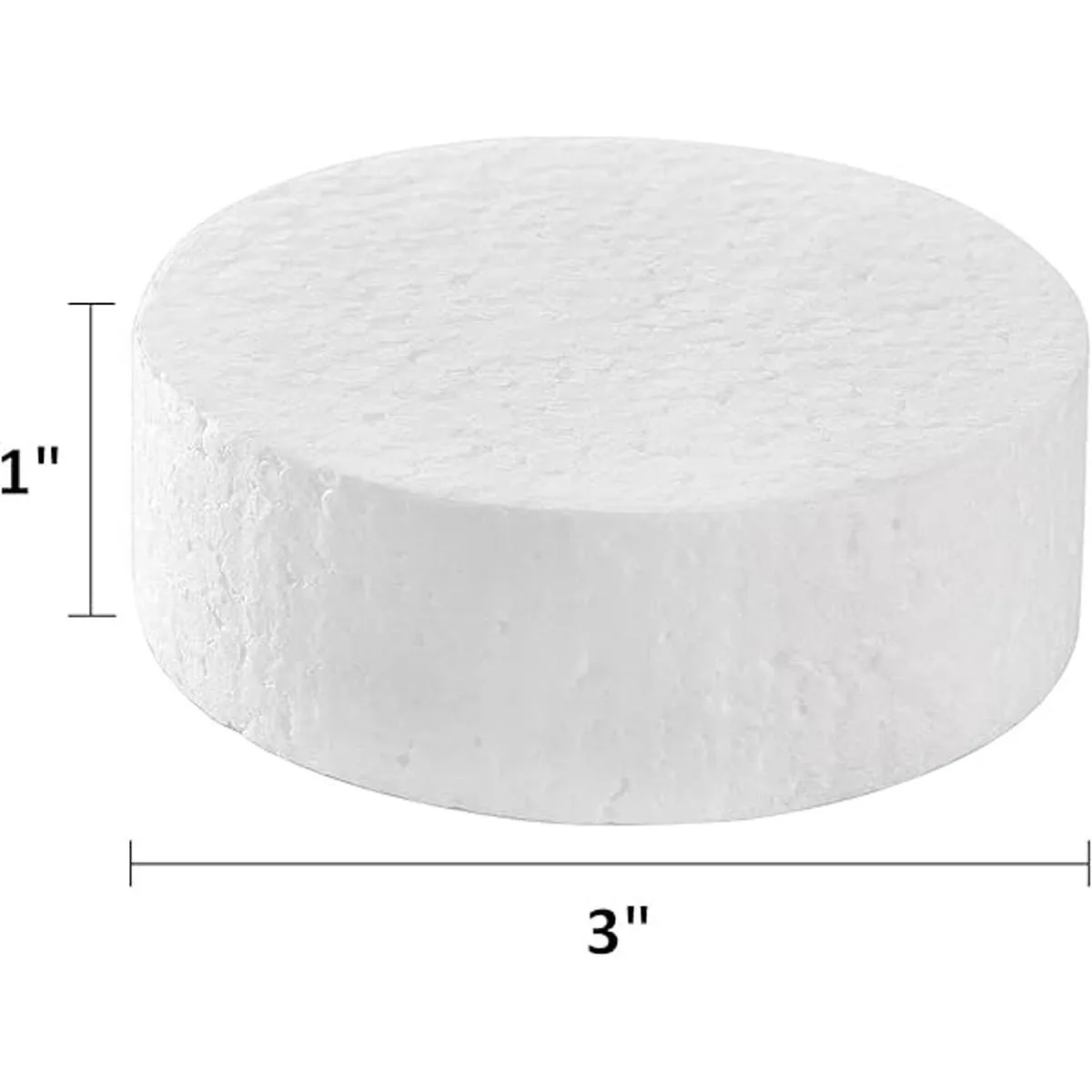ZOOFOX Paquete de 48 círculos de espuma, discos de espuma de poliestireno de 3 x 3 x 1 pulgada, espuma redonda para manualidades de bricolaje, escultura, modelado, clase de niños, arreglo floral blanco