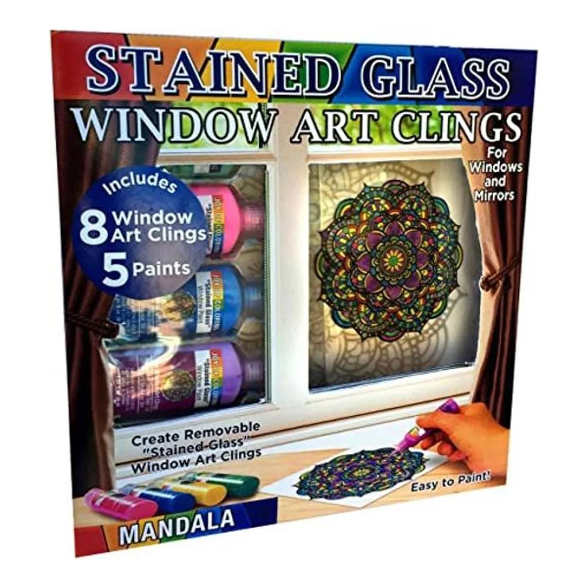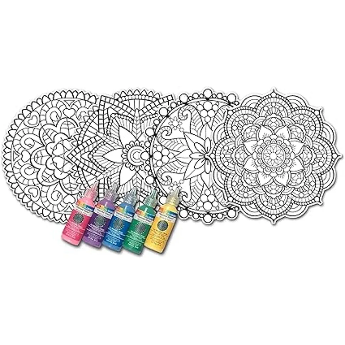 ZORBITZ Joy of Coloring Kit de bricolaje para ventana, 8 adhesivos y 5 pinturas, 4 hermosos diseños intrincados de mandala, pintura diseñada, se adhiere a cualquier superficie de cristal, juego de 13 piezas, 2680