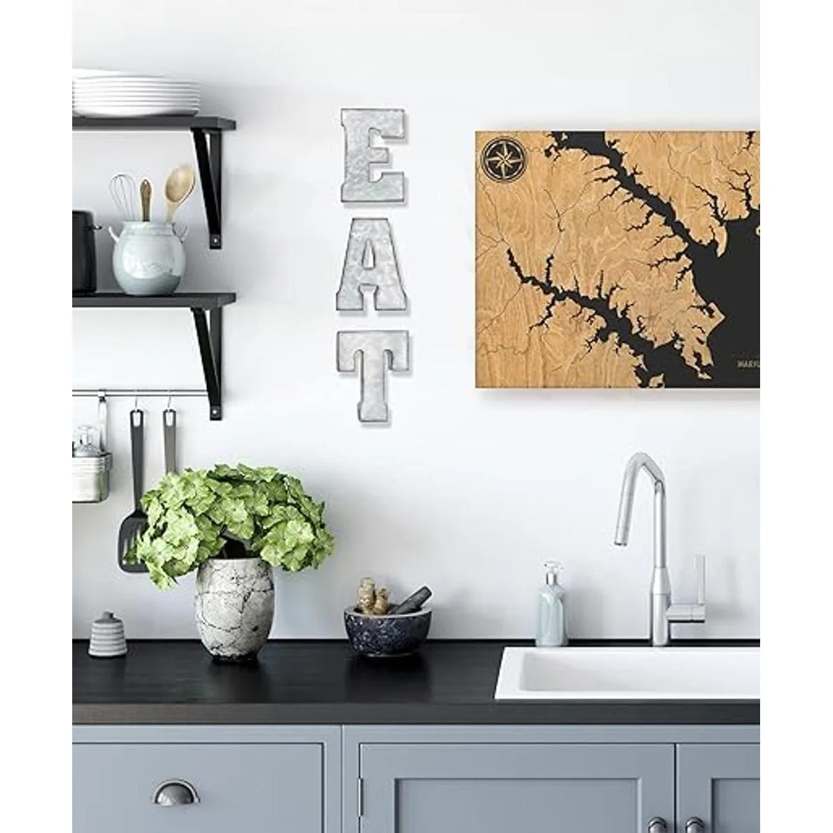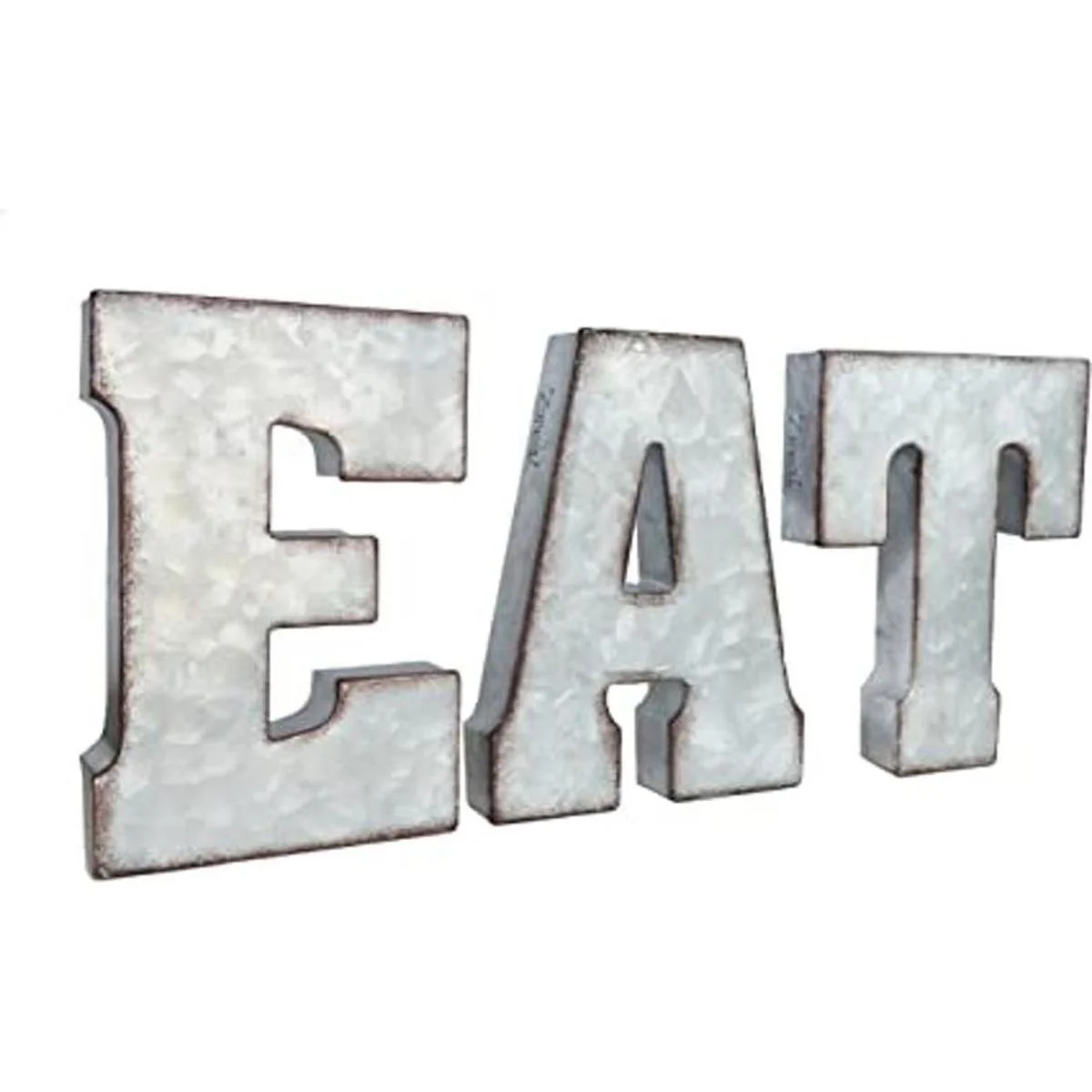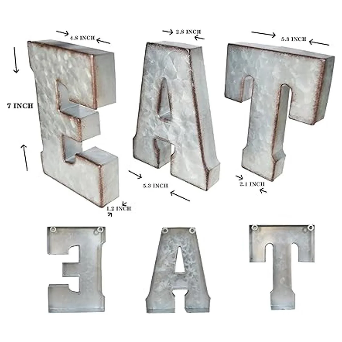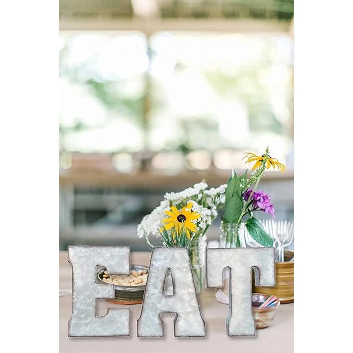 Zoreal Letrero galvanizado EAT letras rústicas de metal, letrero decorativo de pie libre para decoración de pared