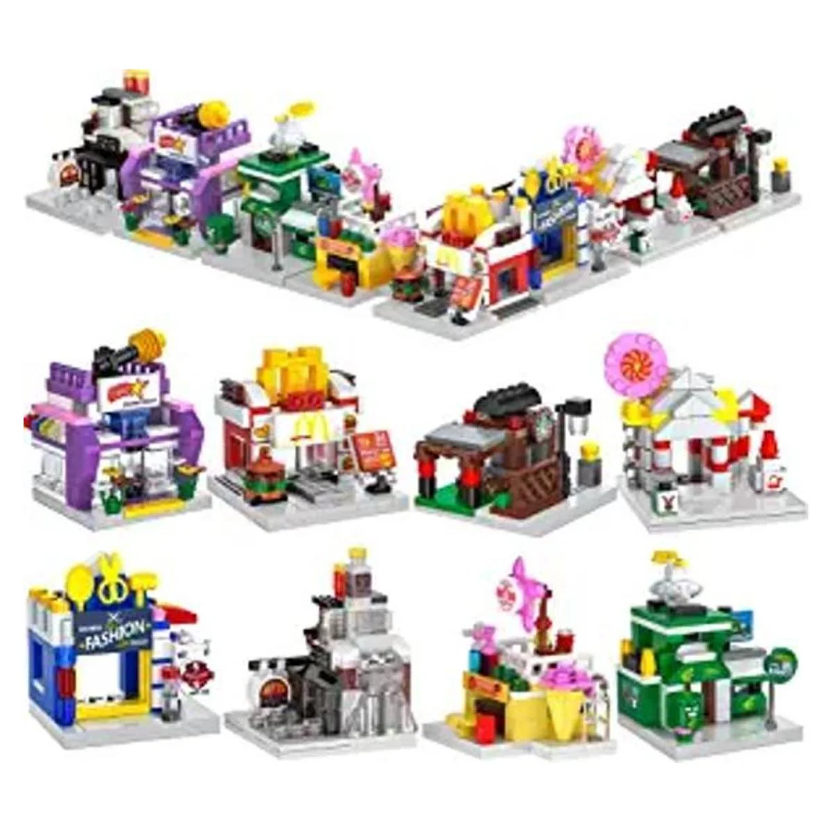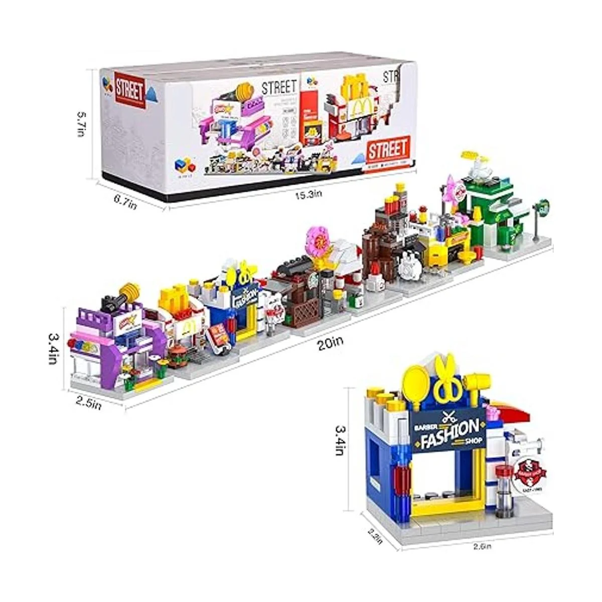 ZornRC Juego de construcción educativo de Street City Creator Store Townhouse City 8 en 1 con peluquería, postres, cafetería, estación de hamburguesas, bar, recuerdos de fiesta de Navidad para niños