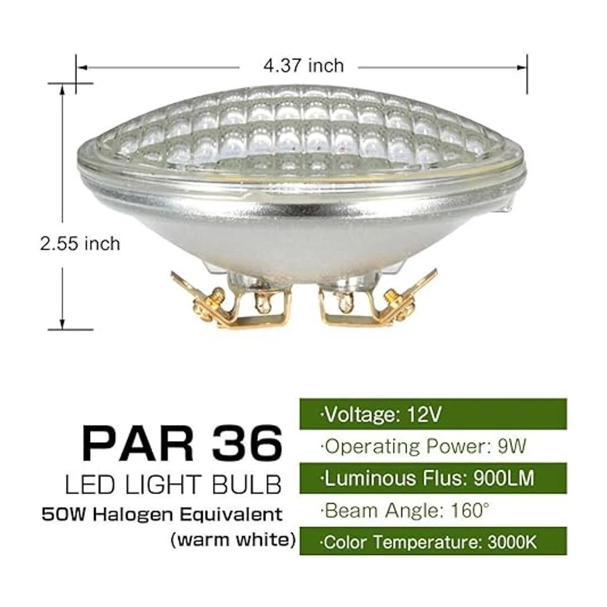 Zorykn PAR36 Bombilla LED de paisaje 9 W, 900 lm, 50 W, equivalente a halógeno, 3000 K, blanco cálido, 12 V CACC, resistente al agua, bombilla LED PAR36 para iluminación de paisaje, vehículos todoterreno, vehículos RV, tractor paquete de 4