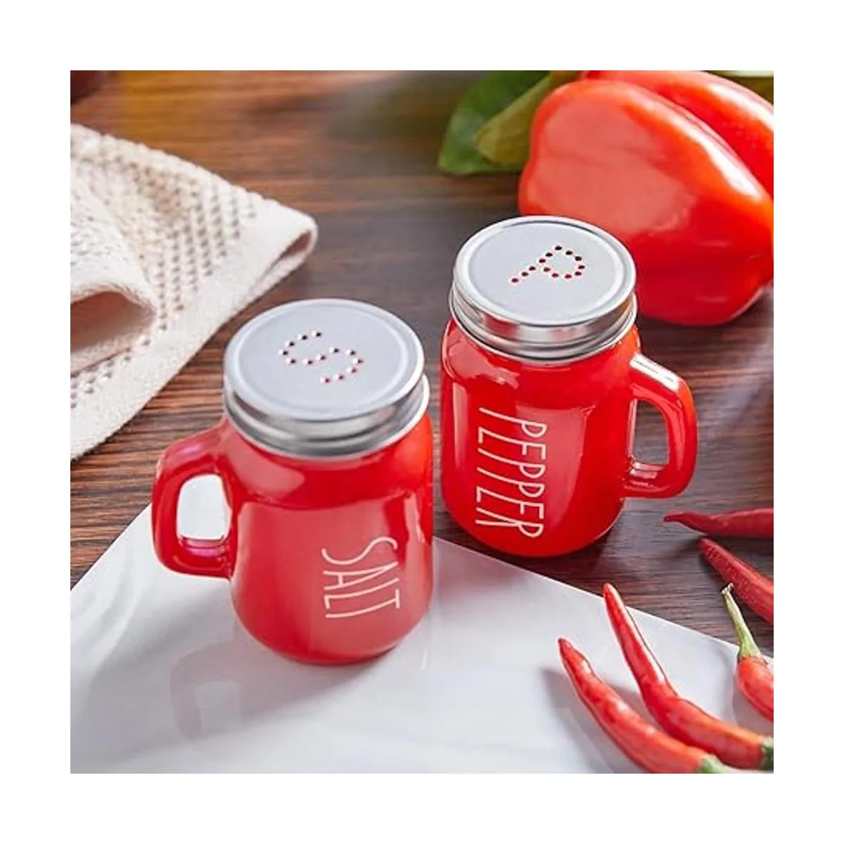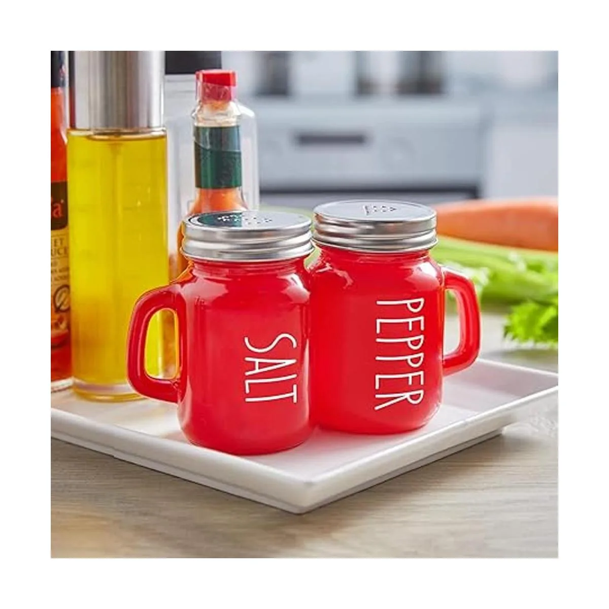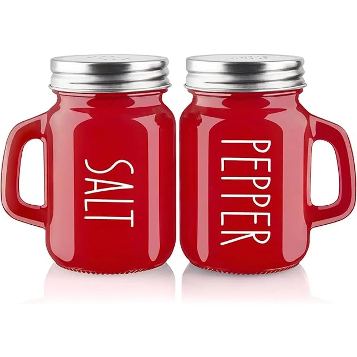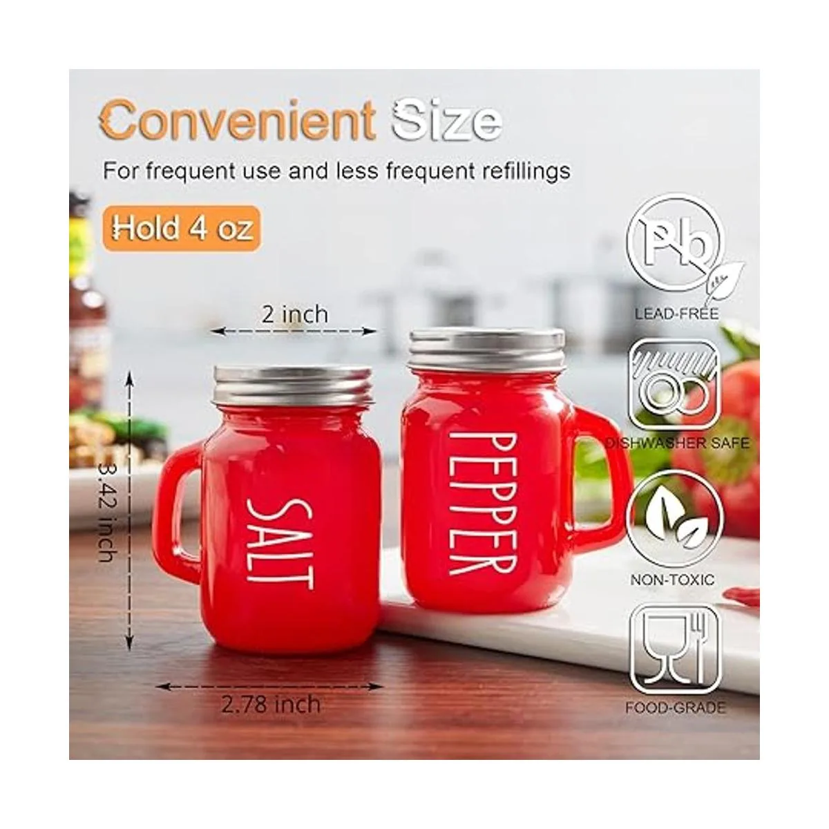 ZOSUJO Juego de saleros rojos y pimenteros de 4 onzas, bonitos juegos modernos de coctelera de cristal rojo de Navidad con tapas de acero inoxidable, decoración de cocina roja de granja y accesorios para el hogar, restaurantes, bodas
