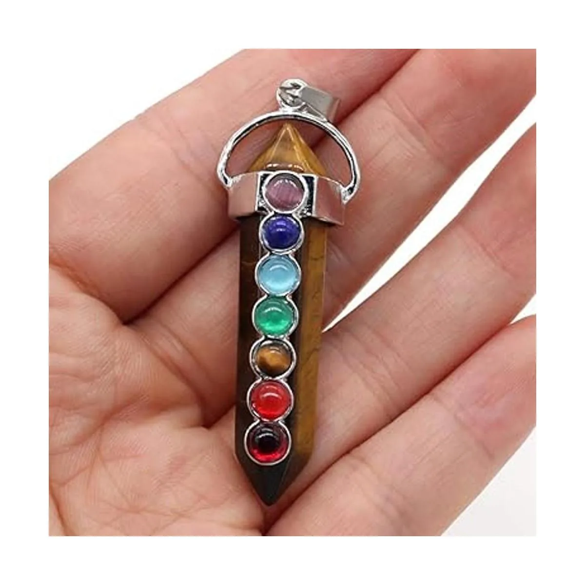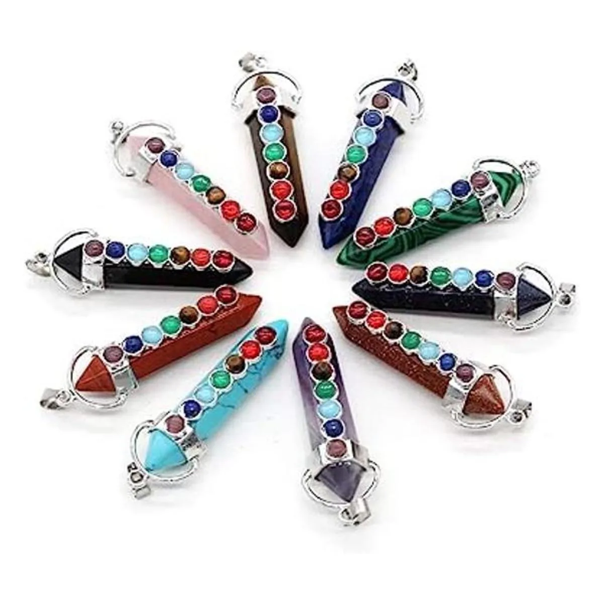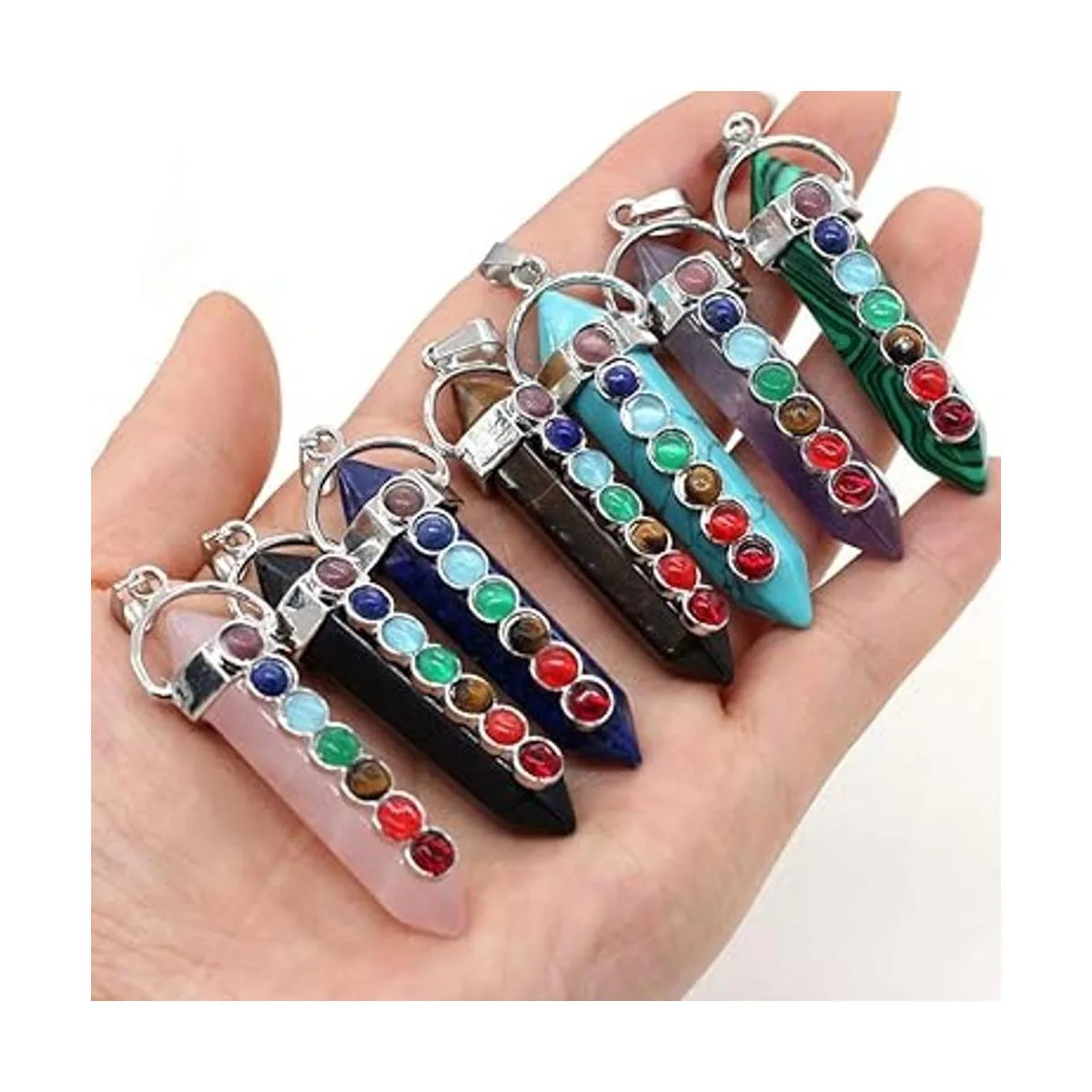 Material: colgante de piedra natural de aleación de metal con forma de columna de cristal de siete chakras para hacer accesorios de collar