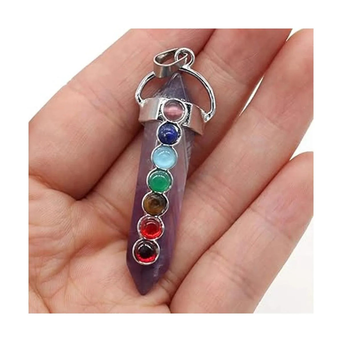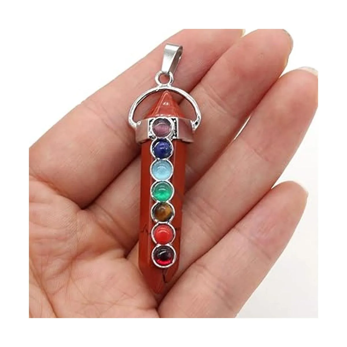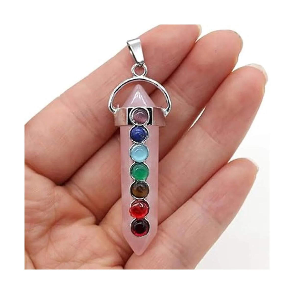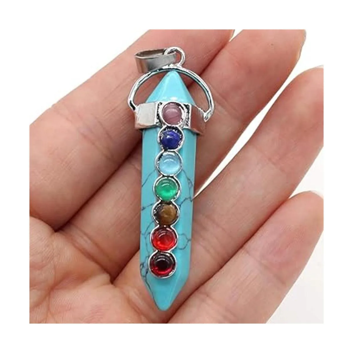 Material: colgante de piedra natural de aleación de metal con forma de columna de cristal de siete chakras para hacer accesorios de collar