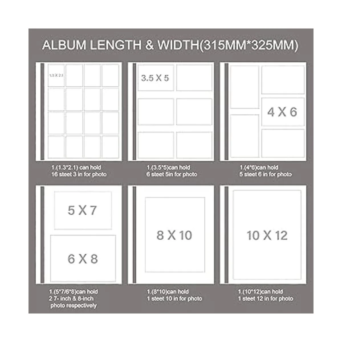 lbum único de bricolaje: los álbumes de fotos pueden contener fotos de diferentes tamaños, incluyendo 3 x 5, 4 x 6, 5 x 7, 6 x 8, 8 x 10 pulgadas. Además, también puedes escribir y hacer tú mismo en varios estilos en el papel del álbum.