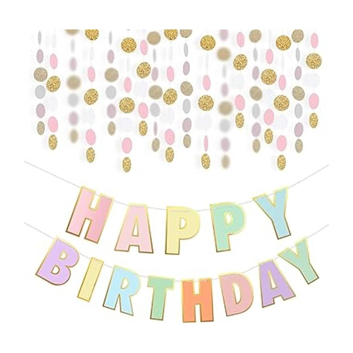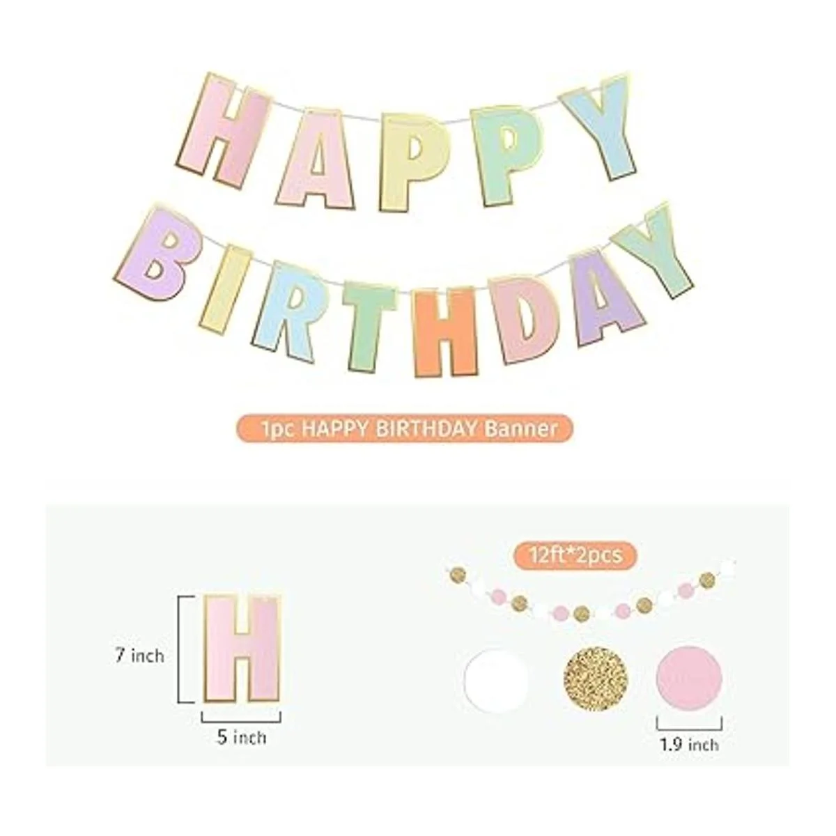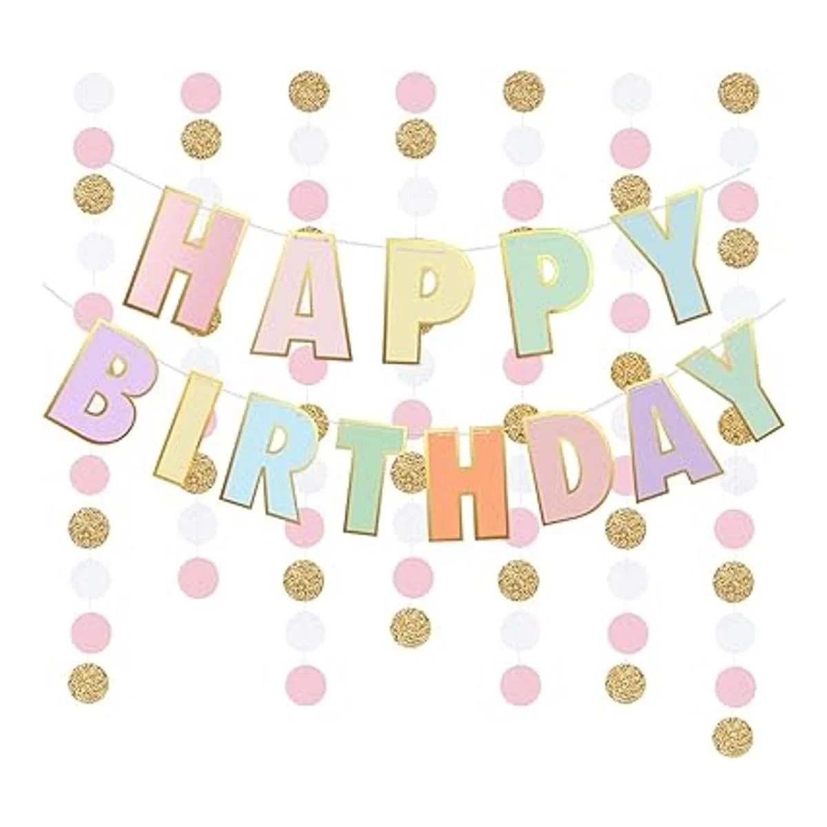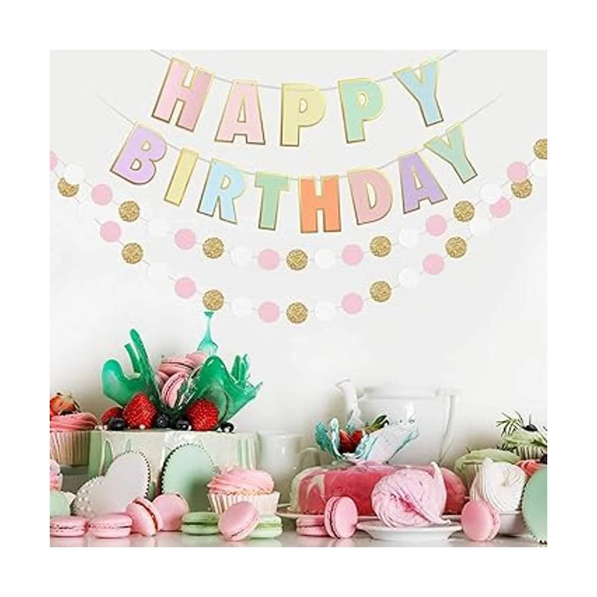 ZoZac Banner y decoraciones de feliz cumpleaños, decoraciones de cumpleaños para niñas, pancarta de feliz cumpleaños y guirnalda de puntos, colores pastel