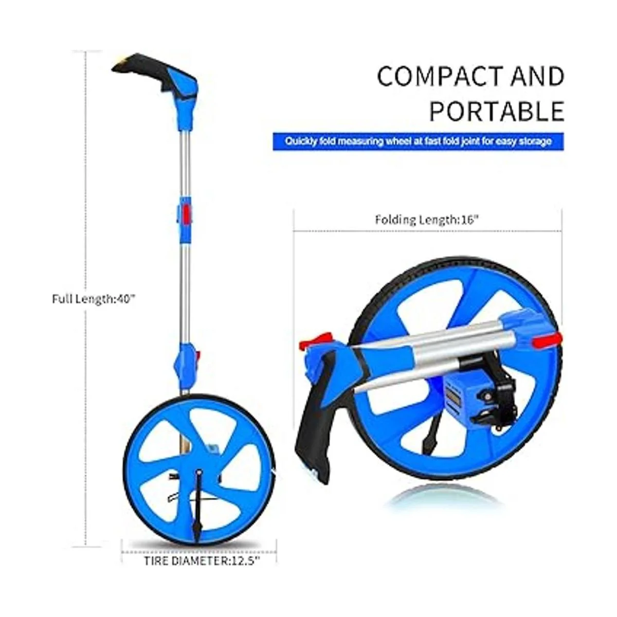 Zozen Rueda de medición, rueda de medición, herramienta de medición de rueda, rueda de cinta métrica rodante, 3 secciones plegables con mochila hasta 10.000 pies, rueda de 12 pulgadas de diámetro, se adapta a varias carreteras.