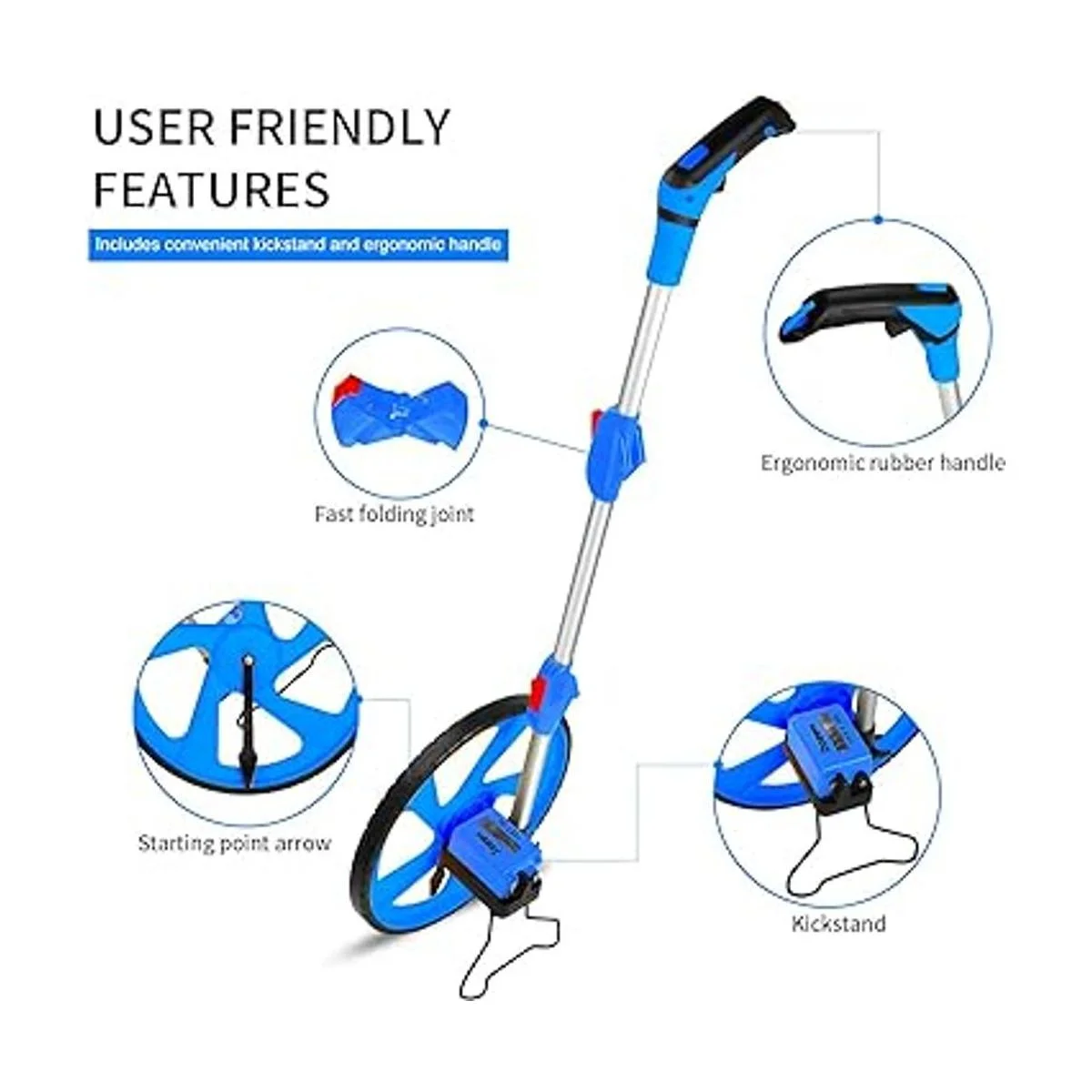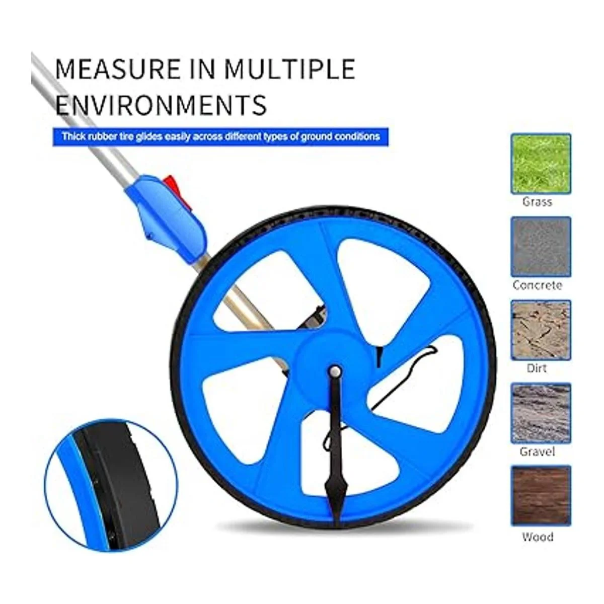 Diferentes entornos: con goma resistente y duradera, la rueda de rodillo está equipada para todos los entornos: hierba, hormigón, grava, suciedad y mucho más. Resistente: las ruedas son ideales para proyectos de trabajo profesionales o actividades escolares. Extremadamente preciso hace que sea extremadamente útil medir las líneas de límite de tu propiedad y vecindario