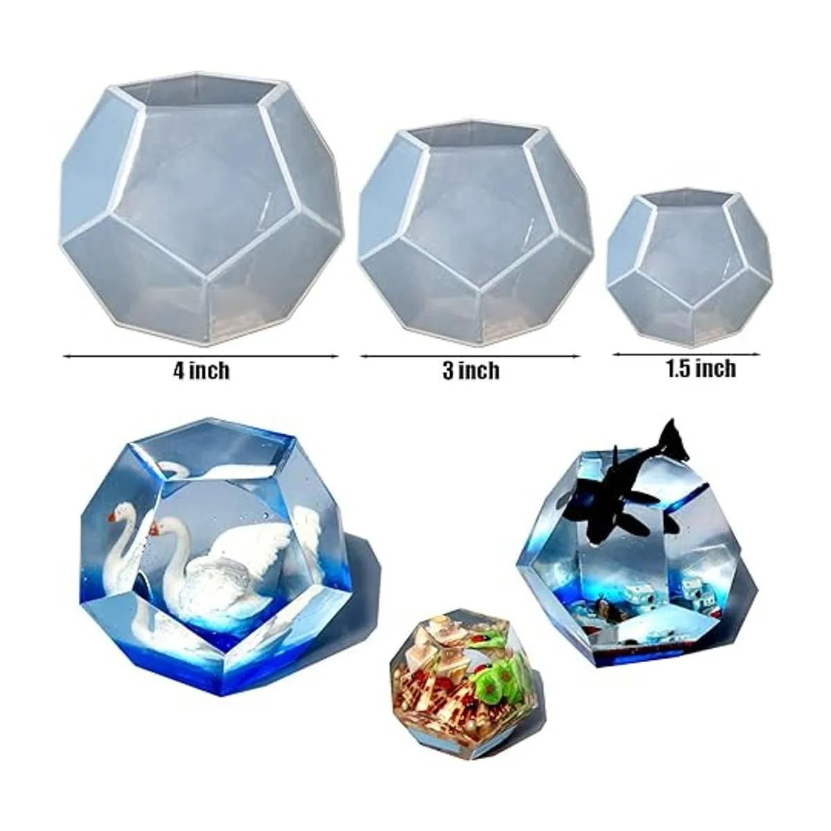 Moldes de esfera de pentágono: tienen 3 diseños clásicos diferentes 4 pulgadas, 3 pulgadas, 1.5 pulgadas, los moldes geométricos poliédricos no solo pueden hacer velas, sino también decoración de mesa del hogar y decoración de fiesta de boda. También es perfecto para niños DIY resina epoxi fundición decoración del hogar, manualidades, arcilla polimérica, etc.