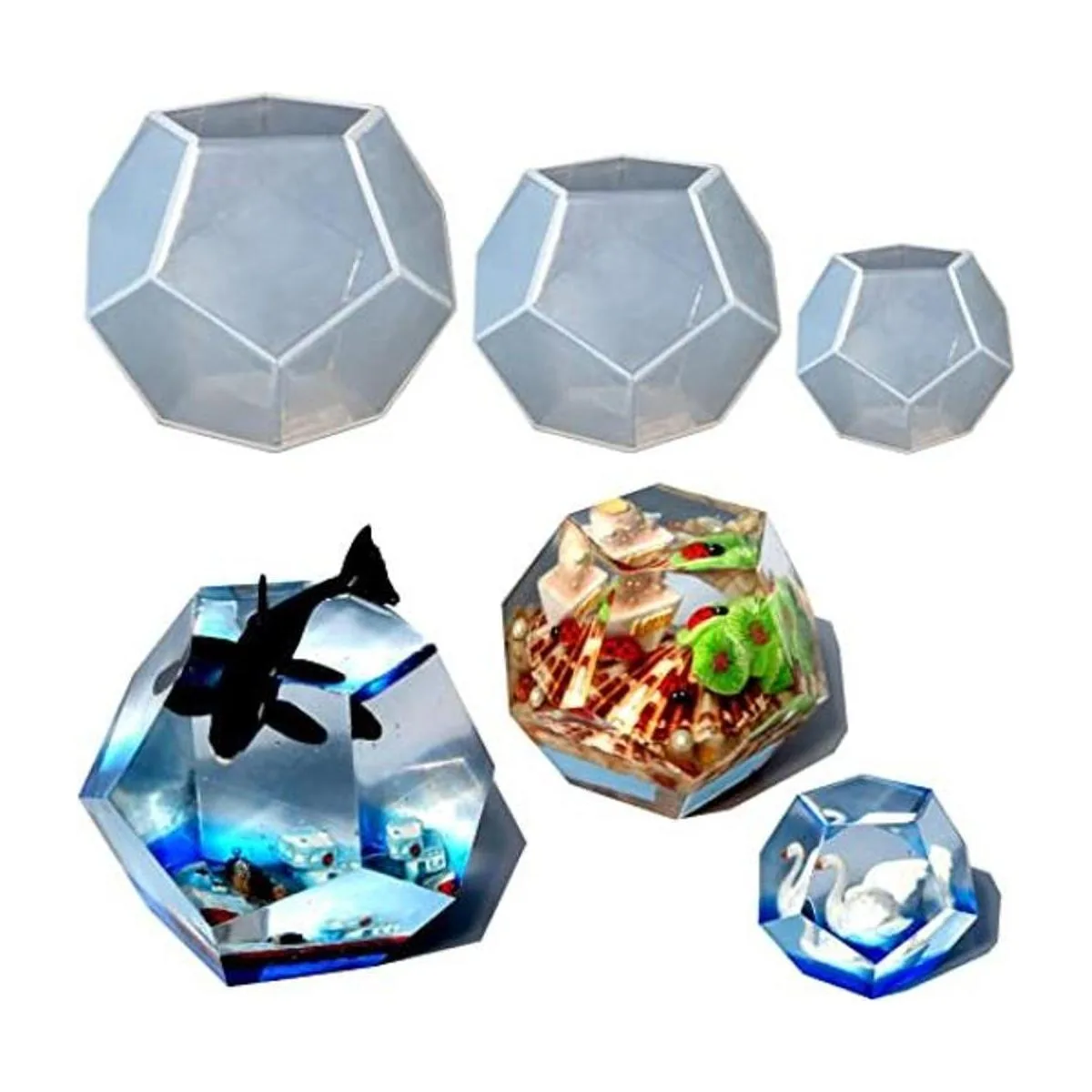 Disfruta de la creatividad de bricolaje: como decoración geométrica de resina epoxi para el hogar, vela de esfera poliédrico, jabón, cera, puedes añadir cuentas, purpurina, diamantes de imitación, lentejuelas, insectos, plantas, mariposas, mini piedras, flores secas y otras cosas en el molde para crear manualidades personalizadas en tus propios estilos.