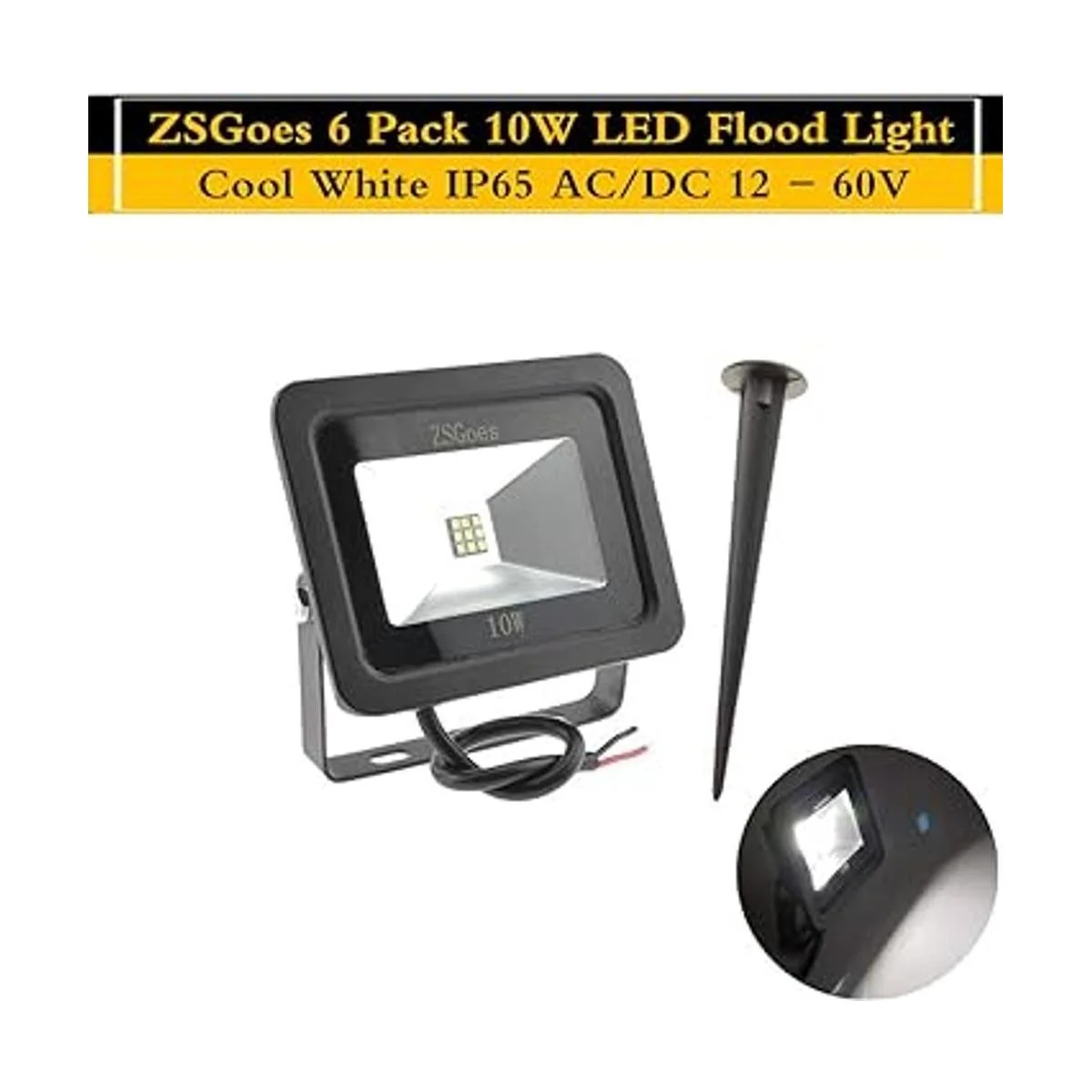 ZSGoes Paquete de 6 luces LED blancas frías de 10 W para exteriores, impermeables, IP65, lámpara de paisaje de seguridad para pared, hogar, cuadrado, patio, garaje, calle, camino, soporte de pico, bajo voltaje, 12 V, 24 V, 36 V, 48 V, 60 V CC