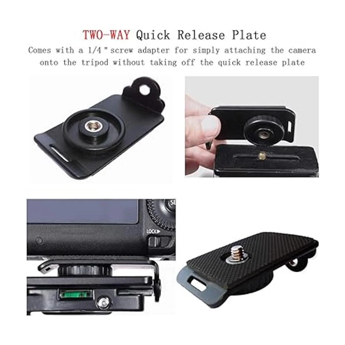 Excelente rendimiento: adopta material de neopreno y nailon, proporciona una alta capacidad de carga de 35.3 lbs. Viene con una placa de liberación rápida bidireccional, está fabricada con material de zinc sólido, con rosca de tornillo de 0.2 in, puedes simplemente fijar la cámara en el trípode sin quitar la placa de liberación rápida.