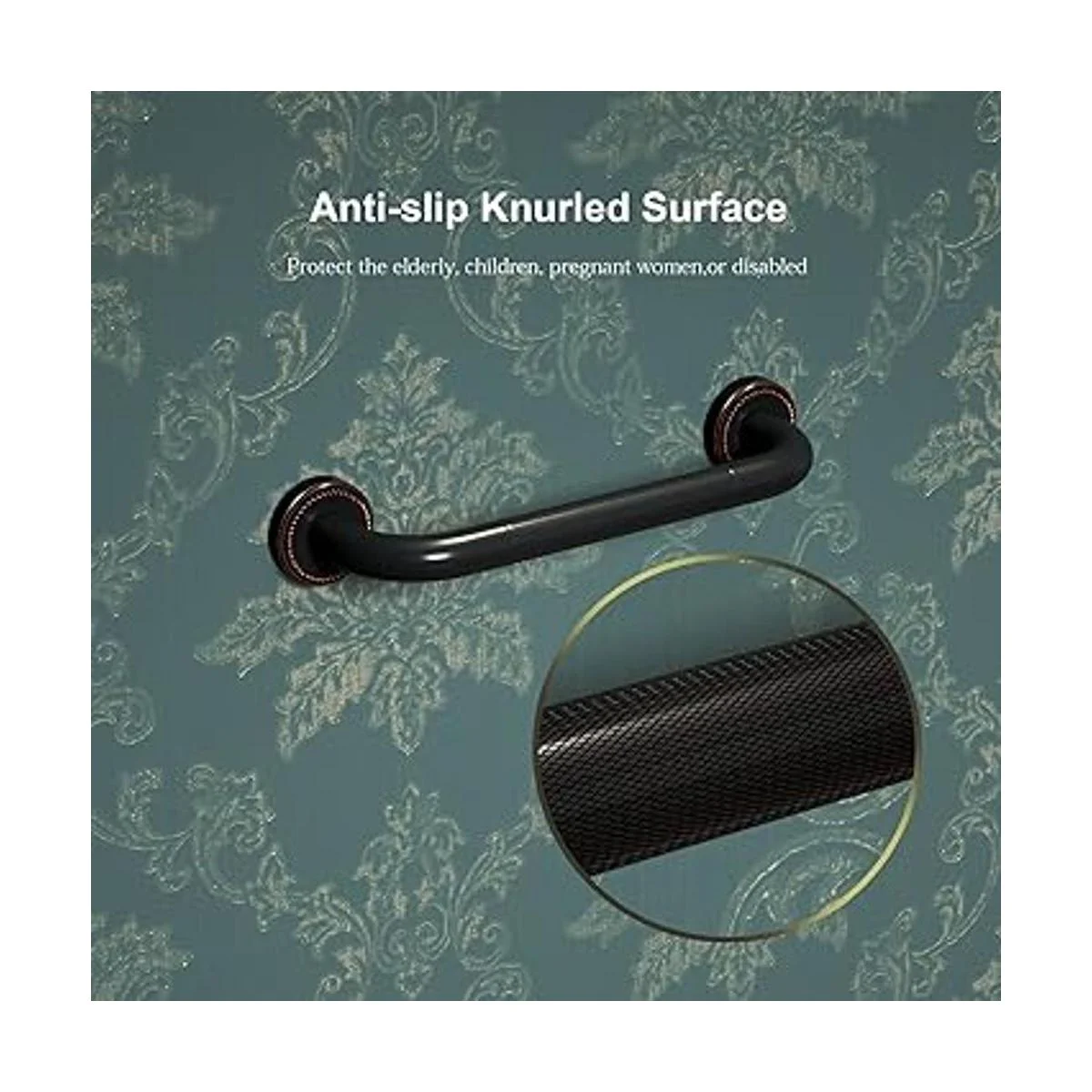 ZUEXT Barra de ducha antideslizante de bronce de 12 pulgadas, color negro, barra de agarre de baño de latón envejecido, barra de equilibrio de baño moleteada, soporte de mano de seguridad para discapacitados, lesiones de ancianos, mango de baño