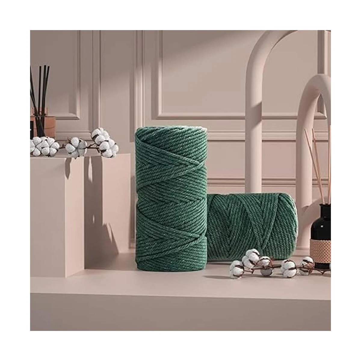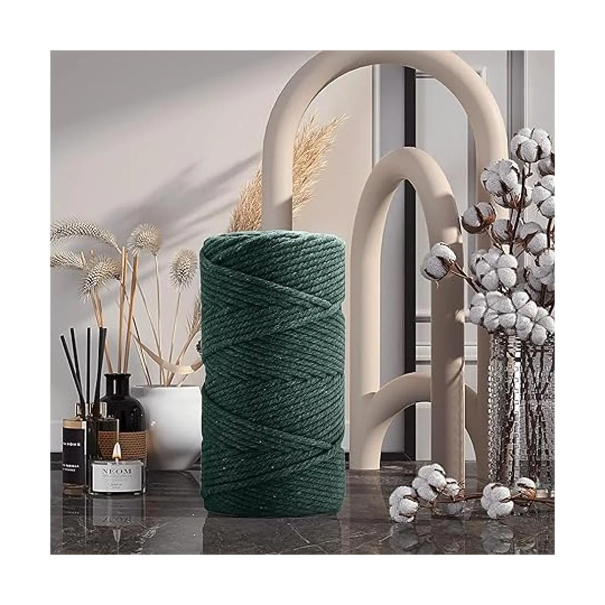 ZUEXT Cordón de algodón de macramé verde negruzco de 0.197 in x 109 yardas, cuerda de macramé de 4 hebras de colores trenzados, cuerda de macramé de algodón natural para manualidades, colgar en la pared, tapiz para plantas, para tejer 328.1 ft