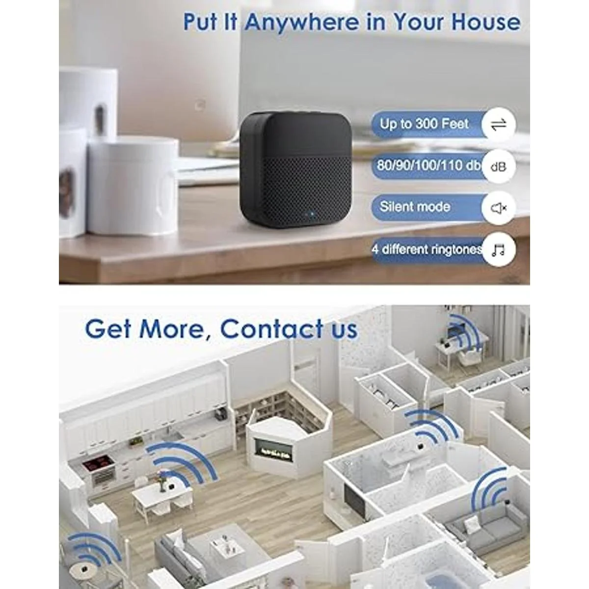 Detección de movimiento y conversación bidireccional: la cámara inalámbrica del timbre graba video cuando se detecta movimiento y envía alertas instantáneas a tu teléfono. Con sensor PIR, la cámara del timbre soporta el modo detección corporal para que la cámara detecte solo humano. La sensibilidad se puede personalizar. Con micrófono con cancelación de ruido, puedes hablar en tiempo real con mensajeros o asustar a personas sospechosas a través de tu teléfono. También puedes seleccionar un mensaje de voz pregrabado para respuestas rápidas cuando no estés disponible para hablar.