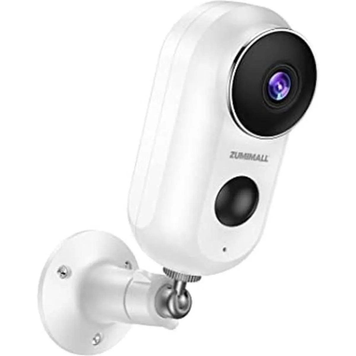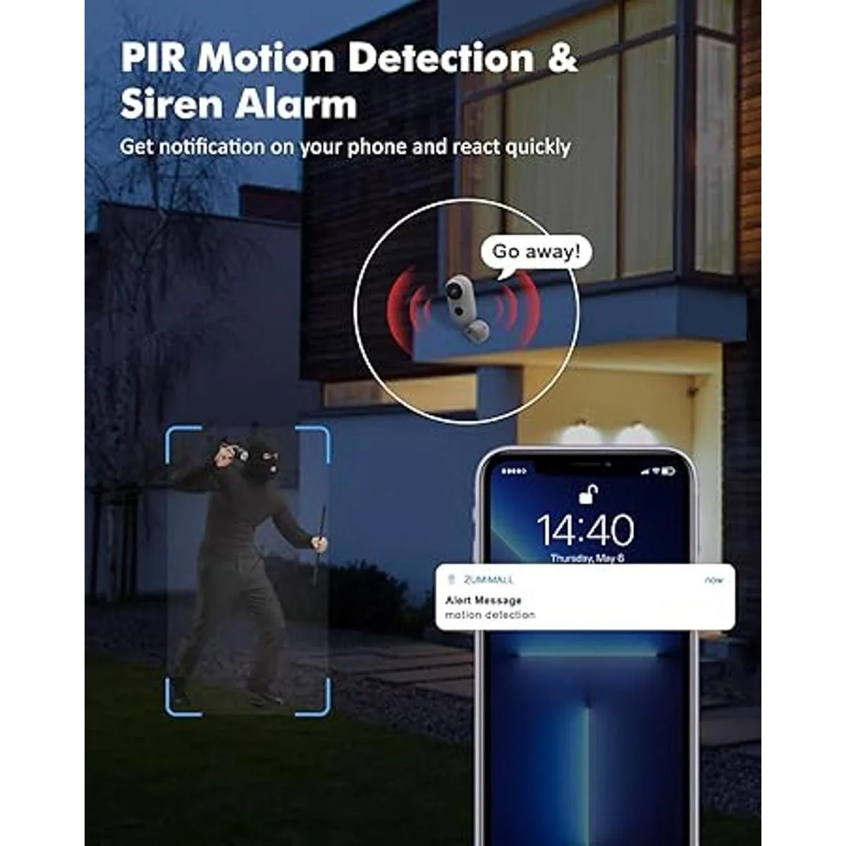 ZUMIMALL Cámara para exteriores inalámbrica, 2K FHD con batería con sirena, cámara de vigilancia recargable para exteriores e interiores para seguridad del hogar, visión nocturna, detección de movimiento, WiFi 2.4G