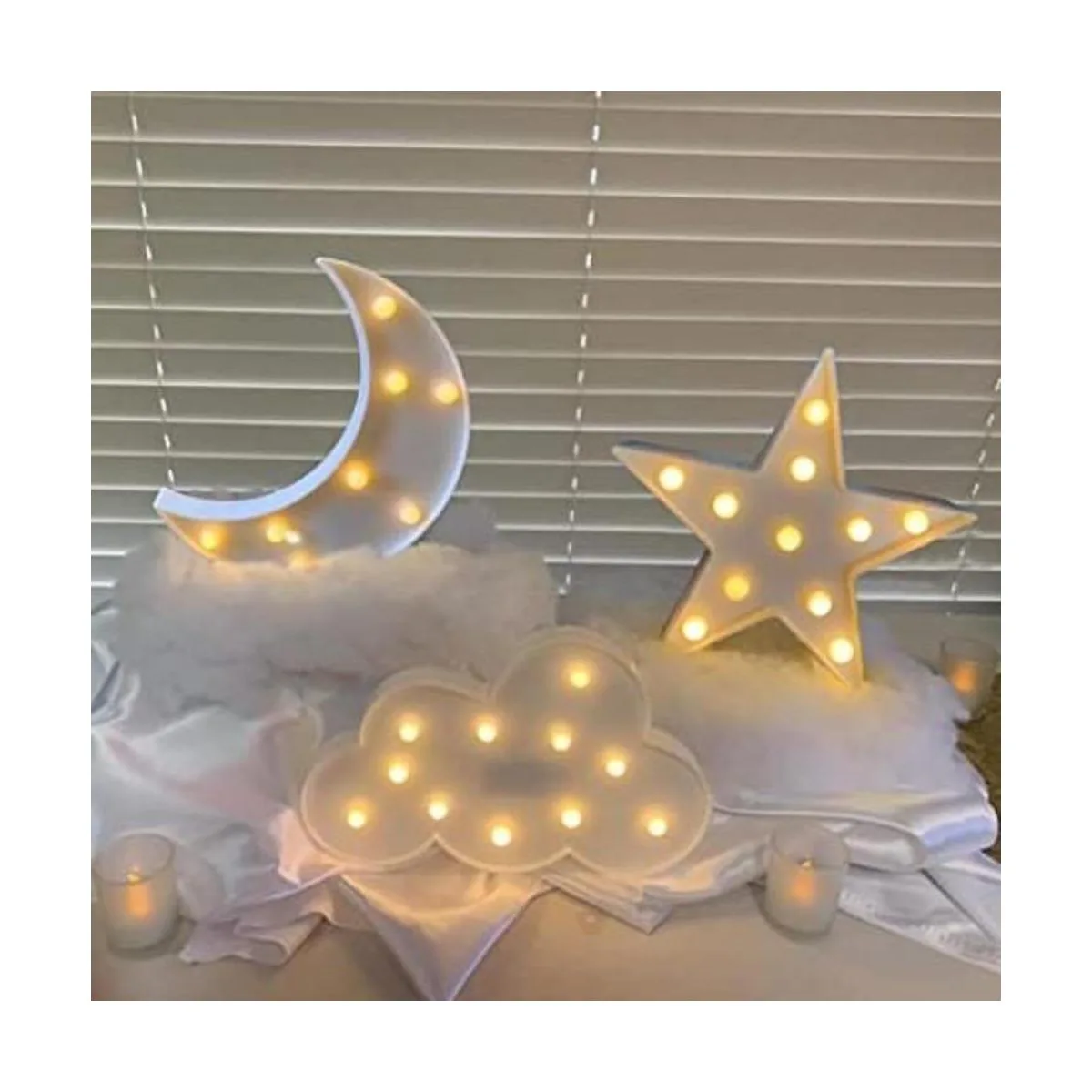 ZUOVAOV Stars, Moon and Clouds Logo Night Light, Cute Baby Room Decoration Night Light, Party Party Shiny Decorative Ornament. White Star Moon Cloud