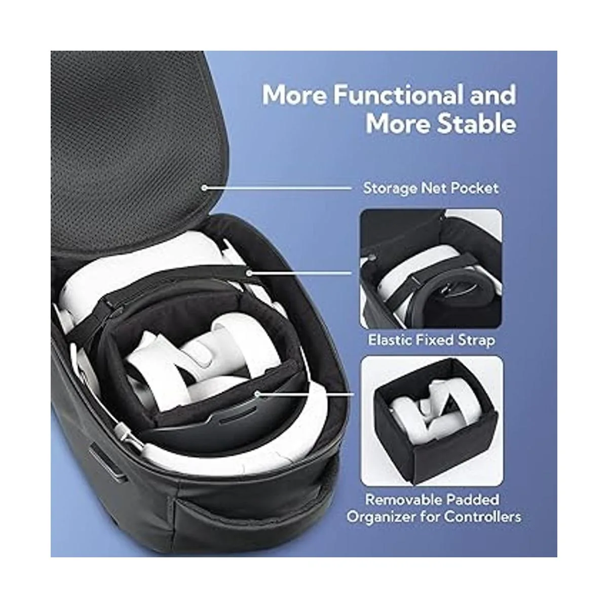 Elegante funda mochila para Oculus Quest 2. La carcasa termoformada de poliuretano actúa como un escudo para caminar con protección de seguridad. Además, la funda de transporte para Quest 2 combina un aspecto elegante, versatilidad, impermeable, a prueba de golpes para dar a los entusiastas de la realidad virtual una mejor opción.