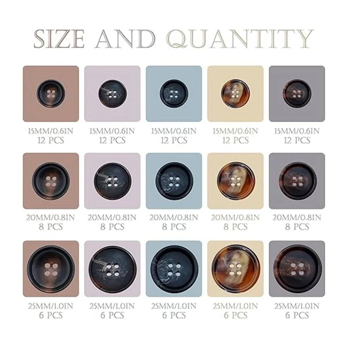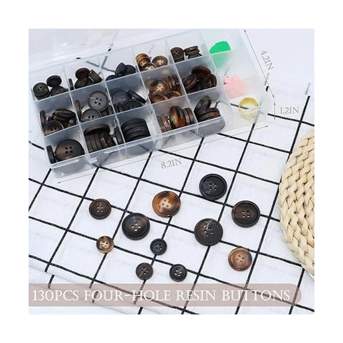 Resina de alta calidad: los botones de 4 agujeros están hechos de resina de alta calidad, que no solo es fuerte y duradera, sino que también tiene una superficie lisa y transparente. Tienen buena resistencia a altas temperaturas y abrasión, y se pueden lavar y secar.