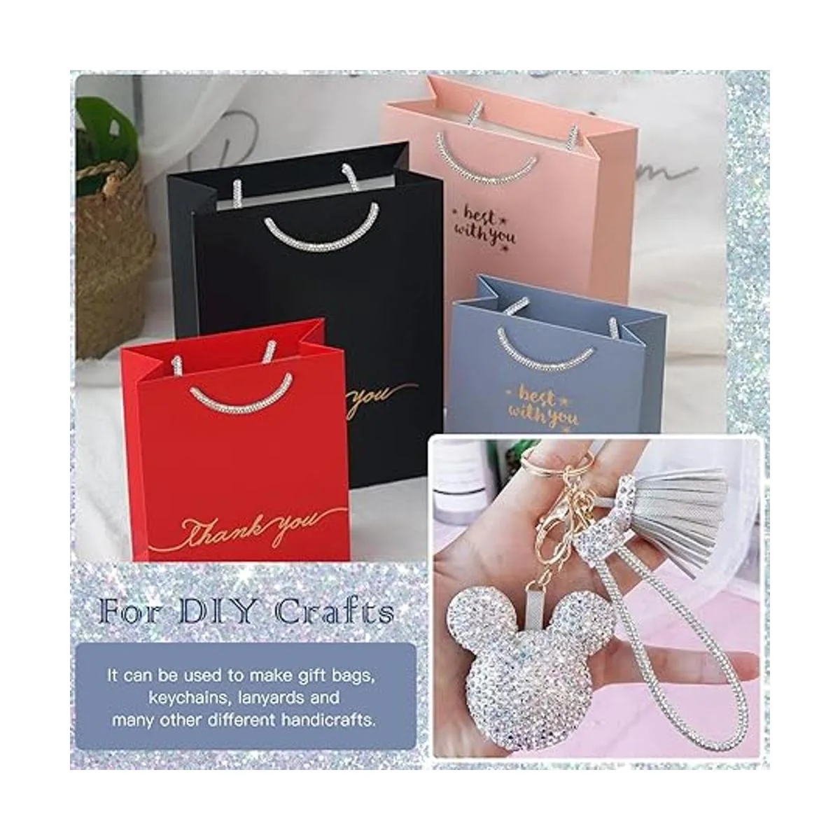 Calidad prémium: la capa exterior de cordones de cuero está firmemente envuelta con una capa de diamantes de imitación brillantes para manualidades, la artesanía es exquisita y no se cae fácilmente. La cuerda de diamantes de imitación tiene un núcleo de algodón duradero, fuerte y suave, que es cómodo de usar.