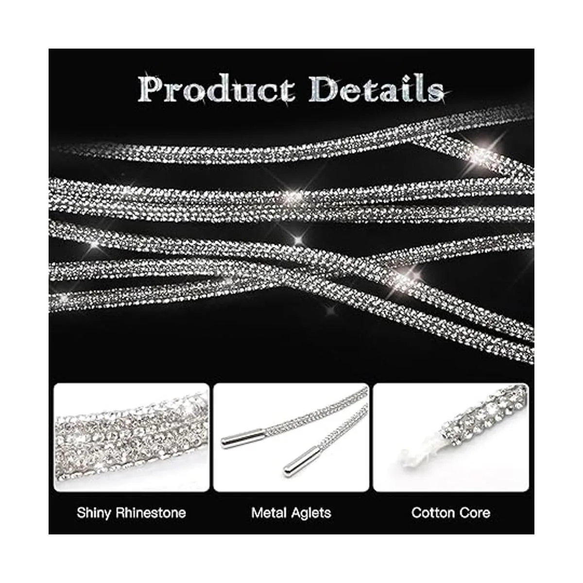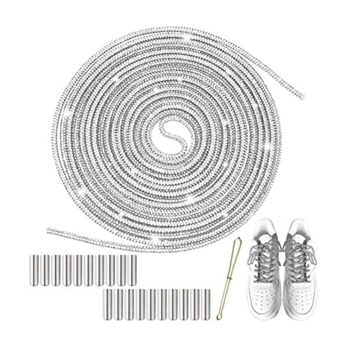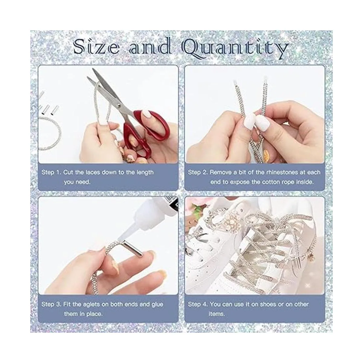 Juego suficiente: en este kit, recibirás un par de cordones de diamantes de imitación plateados que miden aproximadamente 8.7 yardas de largo, y 20 aglets, así como un enhebrador de cuerda de metal. Te permite hacer fácilmente cordones brillantes.