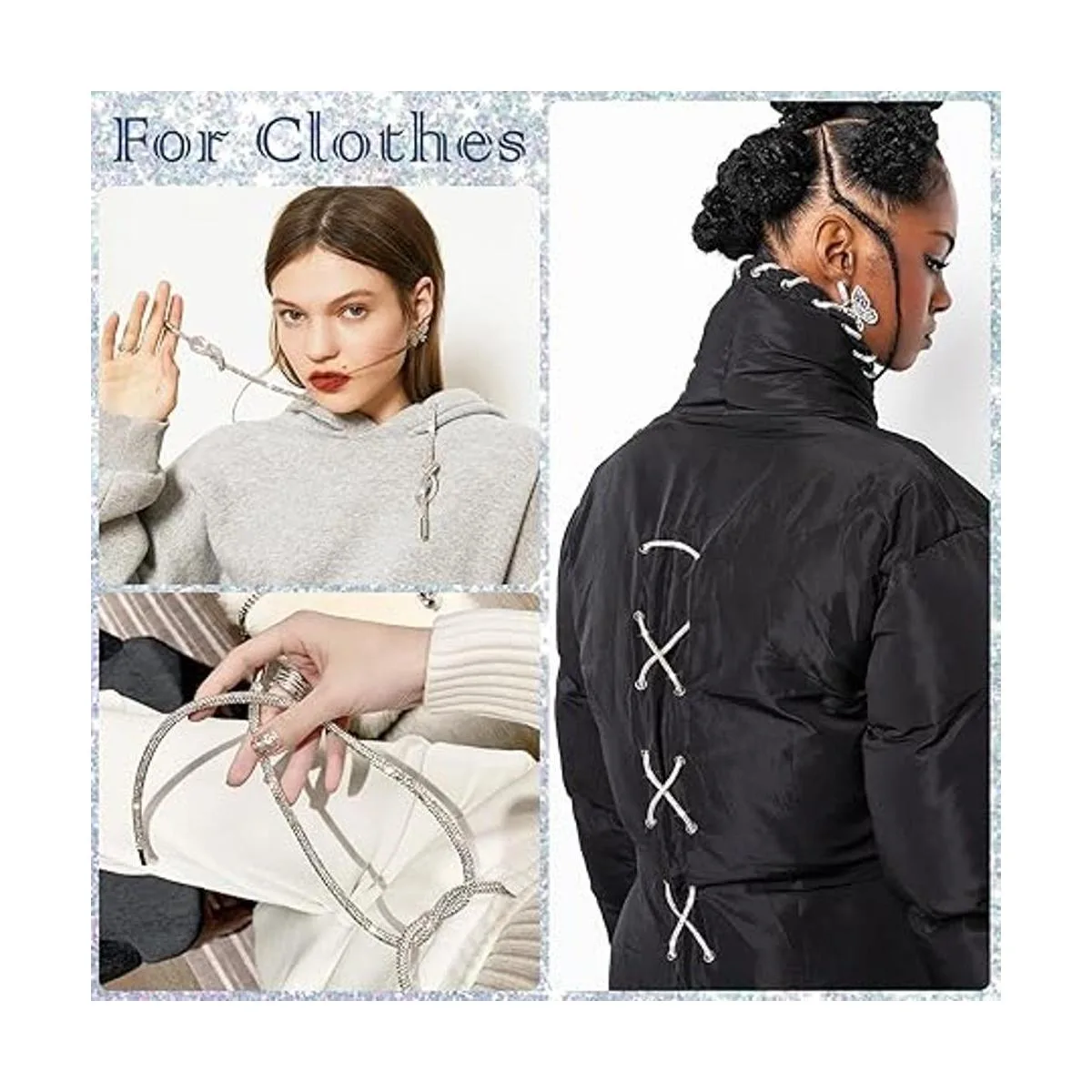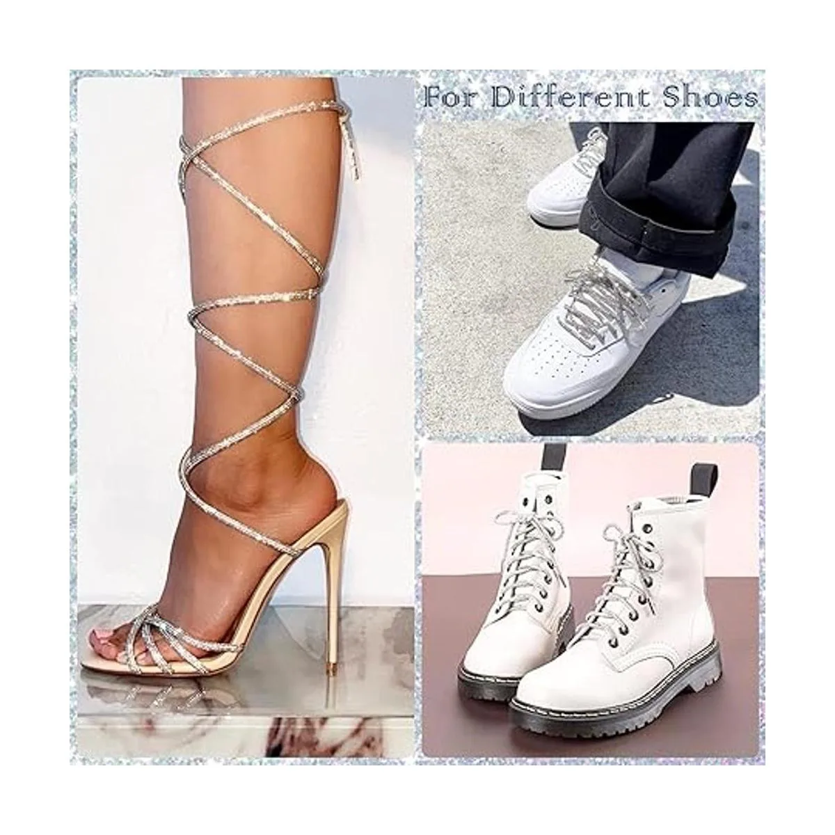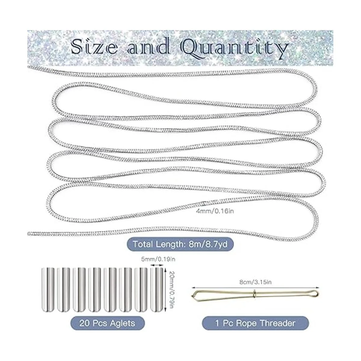 Juego suficiente: en este kit, recibirás un par de cordones de diamantes de imitación plateados que miden aproximadamente 8.7 yardas de largo, y 20 aglets, así como un enhebrador de cuerda de metal. Te permite hacer fácilmente cordones brillantes.