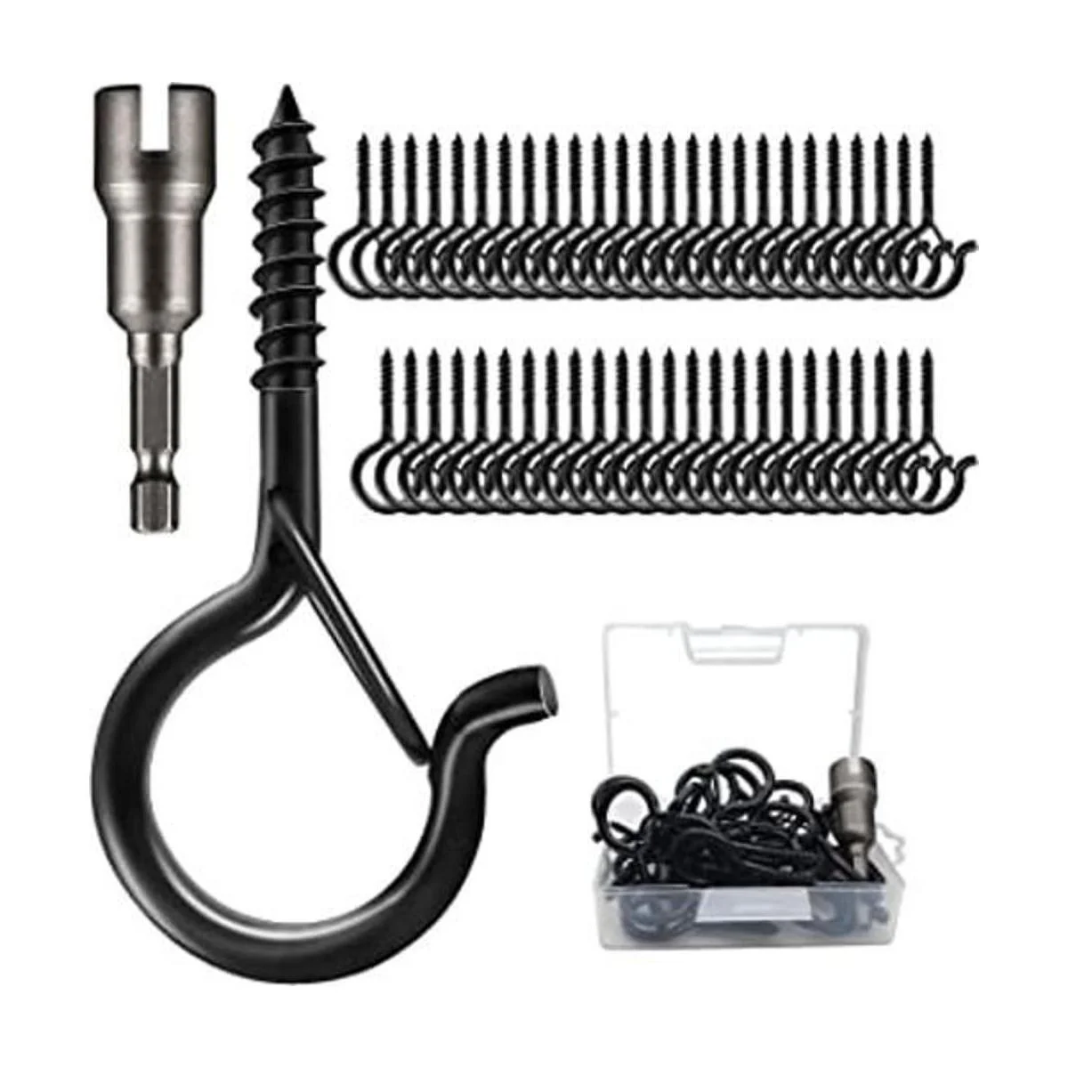 Zzbety 50 ganchos de tornillo con diseño de hebilla de seguridad, ganchos para colgar luces de Navidad, alambre para exteriores, luces de hadas y luces de cadena, fáciles de liberar, incluye 1 destornillador de tuerca de ala